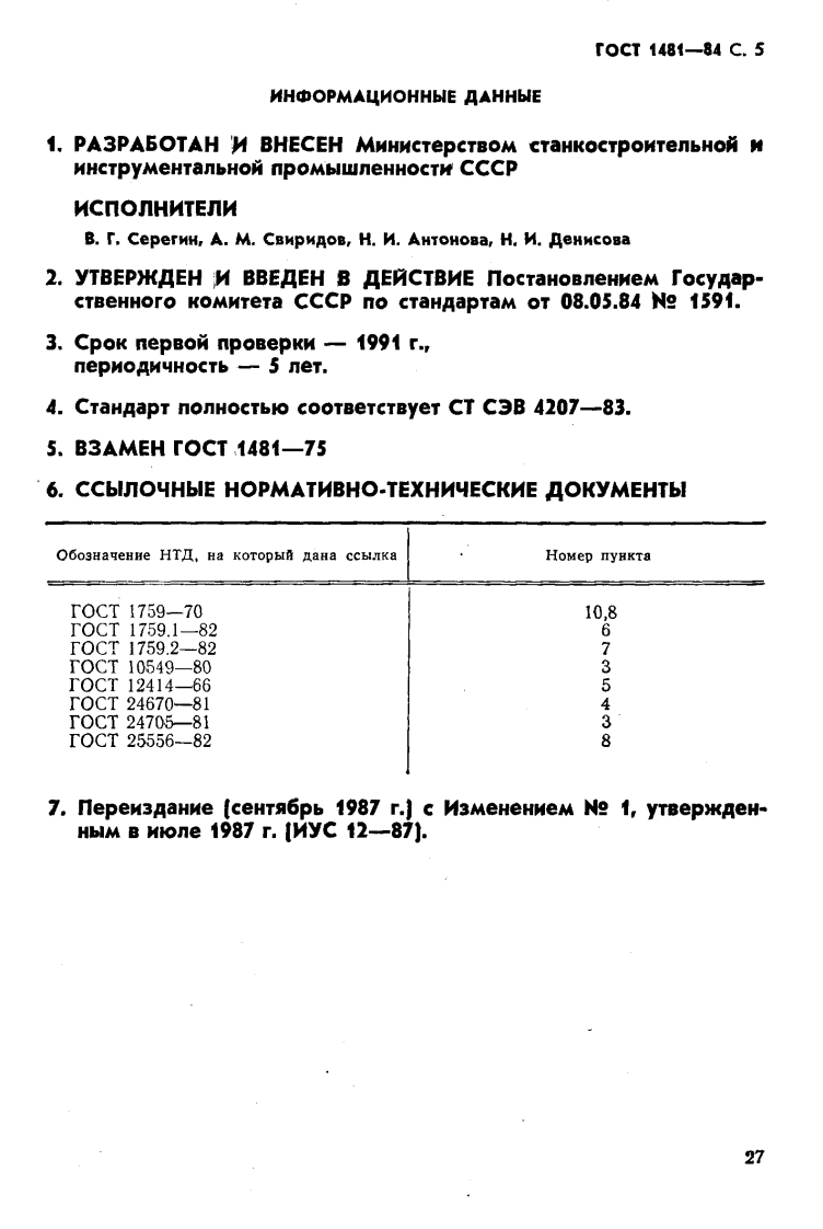 yAK621.882.211:006.354Tpynna r32r OC y AP C T B EH H b C T AH AA PT C OK3 ACCPBMHTbI yCTAHOBOYHbIE C WECTMTPAHHOArOnOBKOR H UHAHHAPHYECKHM KOHUOMKNACCOB TOYHOCTH A H BrocTKoHcTpykung h pa3mepbi1481-84Hexagon-head dog-point set screws.Product grades A and B.Construction and dimensions1CTC3B4207-831OKΠ128400AaTa BBeAeHMa01.01.86Heco6noAeHHe cTaHAapra npecneAyerca no 3akoHy1.HacToaun cTaHnapT pacnpocrpaHaerca Ha ycraHoBoyHbie BHH-TbI c HoMHHanbhbim aHametpom pe3b6bt OT 6 Io 36 MM.2.KOHCTpyKIHa H pa3MepbI BHHTOB OJKHbI COOTBeTCTBOBaTbyka3aHHbIM Ha yepTexke H B Ta6nue.5°..30D=(0,90÷0,95)SM3 gaHue o中munanbHoenepeneuaTka BocnpeweHa★23
