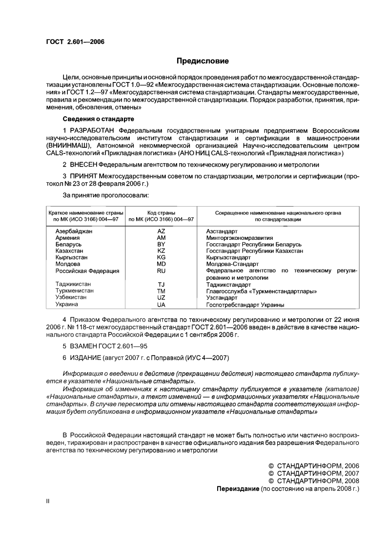 MEXKrOCyAPCTBEHHbIN COBET nO CTAHDAPTN3AUNN,METPONOTMN N CEPTMONKALNN(MrC)INTERSTATE COUNCIL FOR STANDARDIZATION,METROLOGY AND CERTIFICATION(Isc)「OCTMEK「OCyAAPCTBEHHbINCTAHAAPT2.601-2006EnNHaA CncTeMa KoHcTpyKTopckon nokyMeHTaunn3KcnnyATALNOHHbIE OKyMEHTbIM3 naHne o中w4 ManbHoeMockBaCTaHnapTMHφopM2007