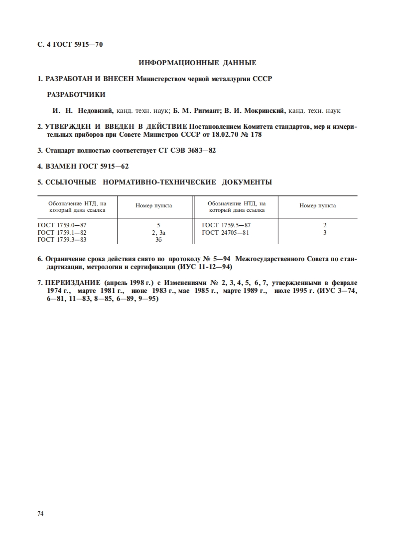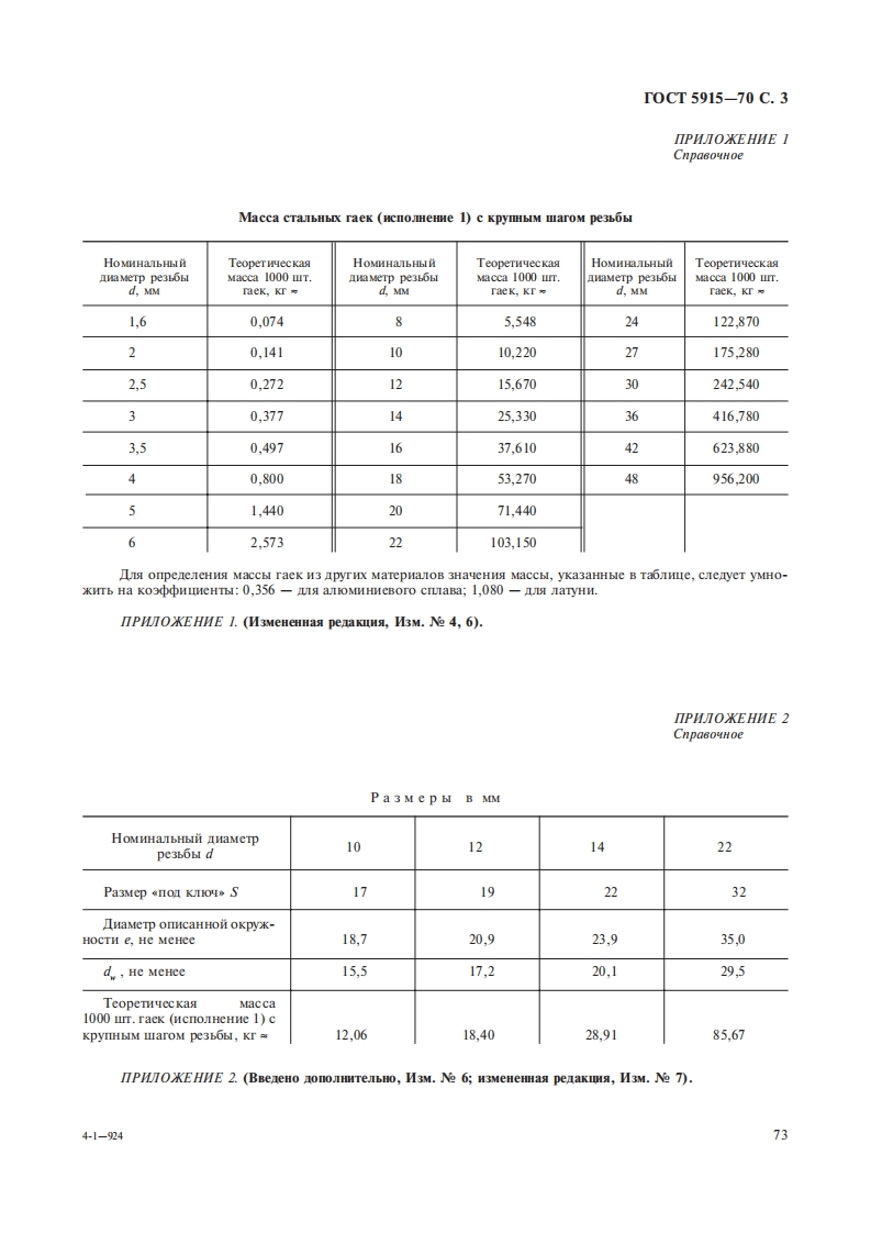 Tpyma T33TO C y IA P CT B E HH bIHCTAHIAPTC O IO 3ACCPTANKN IIIECTTPAHHLIETOCTKJIACCA TOYHOCTH B5915-70KoHCTPyKIHa H pa3Mepbl(CTC3B3683-82)Hexagon nuts,product grade B.Construction and dimensions0KΠ128300Hara BBeaenHa 01.01.72B yacTH pa3Mepa "no1 KJO S=13 MM01.01.731.HacTogumni cTaHnapr pacnpocTpaHserca Ha mecTnrpaHHble raiKn KJacca TOUHOCTH B c aMaMeT-POM pe3b6bI OT 1,6 I0 48 MM.CTaHapT nOHOCTbIo cooTBeTCTByeT CT C3B 3683-82.(M3MeHeHHaa penaKuna,M3M.Ne 4).2.KoHcTpyKuMa H pa3Mepbl raeK OHbI COOTBeTCTBOBaTb yka3aHHbIM Ha yeptexe H B Taonue.(M3MeHeHHaa penakuna,M3M.No 2-7).3.Pe36a-oT0CT24705.(M3MeHeHHaa penaKnna,M3M.Ne 2,4).3a.He ycTaHoBJeHHble HacToM cTaHapToM onycKn pa3MepoB,OTKIOHeHni opMbI H pacno-JoxeHna noBepxHocTei H MeToIbI KOHTpons-no TOCT 1759.1.36.JonycTHMble nedeKTbI noBepxHocTei raek n MeTObI KOHTpona-no TOCT 1759.3.3a,36.(BBeneHbI onoJHHTebHO,M3M.Ne 5).4.(Mck.oveH,3M.№5).5.TexHneckHe Tpe6oBaHns -no TOCT 1759.0.6.(NckmoyeH,M3M.No 2).7.Macca raek yka3aHa B npwoxeHHH 1.8.(NckmoyeH,N3M.Ne 4).McnonHeHue 1WcnonHeHue 2WcnoAHeHue 315.30°021-P53 aHHe o中mHaIbHoeIepenearka Bocnpemena★71