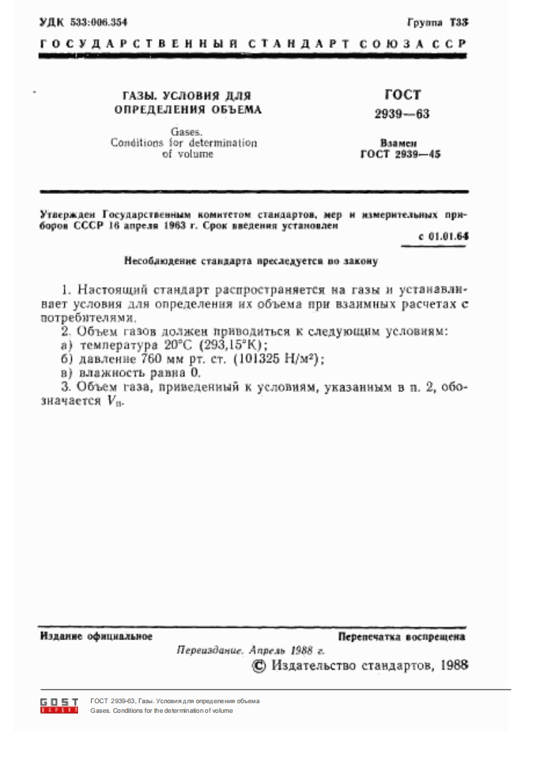 rO C y IA P CT B E HH bI H C T A HI A P TCO O 3A CC PTA3bI.yCJOBHAOnPEEJEHN O6bEMA「0CT2939-63H3amke oonunaabHoerOCyAAPCTBEHHEIA KOMHTET CCCP NO CTAHAAPTAMMocK RaGOSTTOCT 2939-63,Ta3bl.YcnoBMR An onpenene HnR ofbeMaGases.Conditions for the determinafion of volume