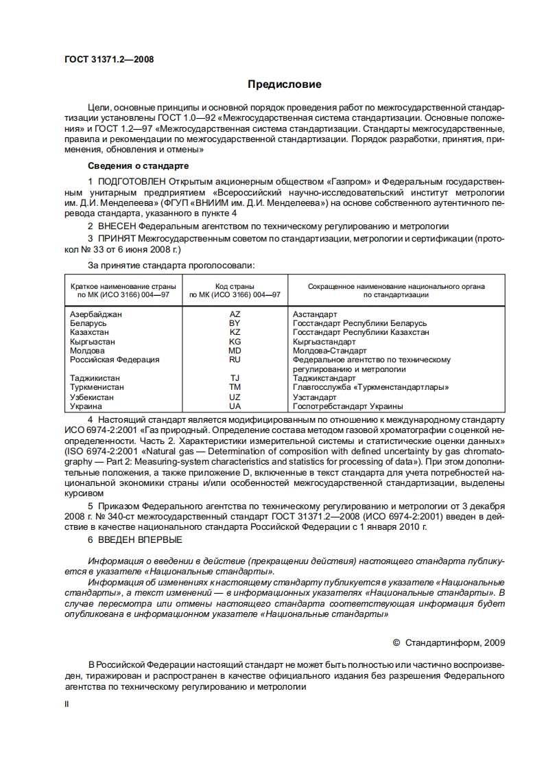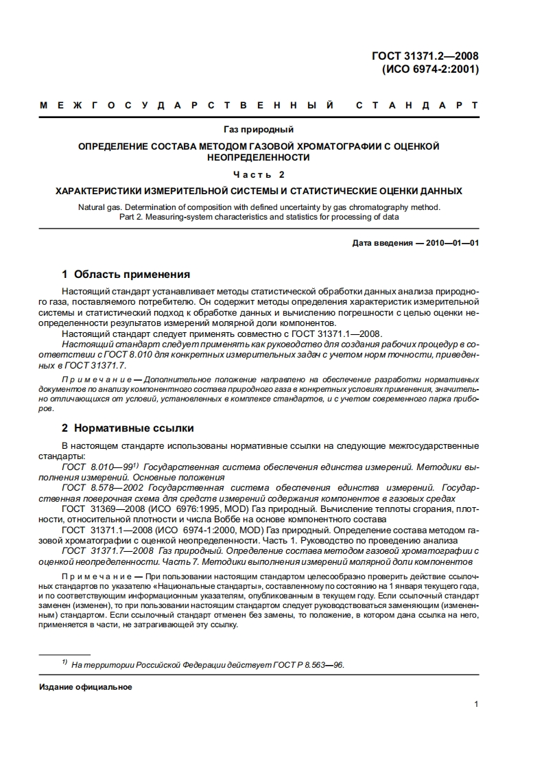 MEXKTOCYAPCTBEHHbIN COBET NO CTAHDAPTN3AUNN,METPONOrMN N CEPTNONKAUNN(MrC)INTERSTATE COUNCIL FOR STANDARDIZATION.METROLOGY AND CERTIFICATIONǖsC)rOcTMEXrOCyAAPCTBEHHbIN31371.2-CTAHAAPT2008(MC06974-2:2001)「a3 npnponHbinOnPEAEEHNE COCTABA METOLOM TA3OBONXPOMATOrPAONN C OLEHKONHEONPEENEHHOCTNYacTb 2XAPAKTEPNCTNKN N3MEPNTENbHON CNCTEMbIM CTATMCTNYECKNE OUEHKM AHHbIX1S06974-2:2001Natural gas-Determination of composition with defined uncertainty by gaschromatography-Part 2:Measuring-system characteristics and statistics forprocessing of data(MOD)M3 naHne o中nunanbHoe8627000008MocKBaCTaHAapTMH中opM2009