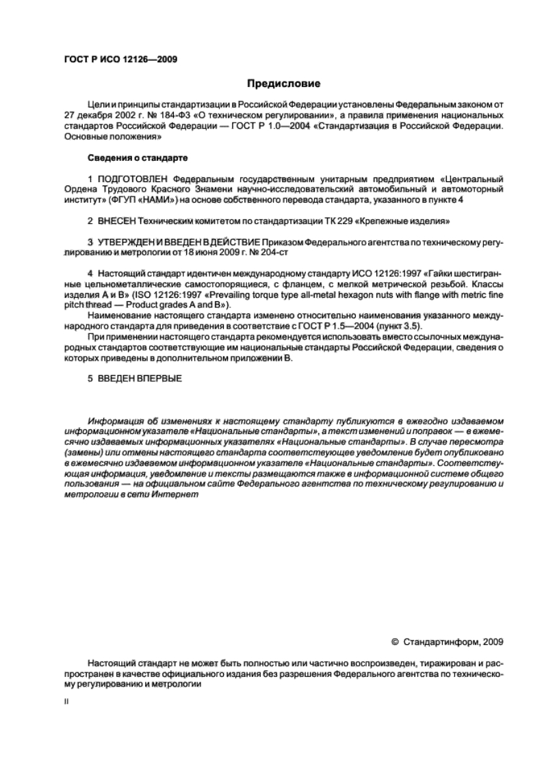 EAEPAnbHOE ArEHTCTBOnO TEXHMYECKOMy PErynNPOBAHNIO M METPOnOrMNHAUNOHAnbHbINTOCT P MCOCTAHAAPT12126-POCCMNCKON2009中EAEPA4MMrANKM山ECTMrPAHHbIECAMOCTONOP叫MECALENbHOMETANNYECKNE C nAHUEM.C MENKNM山ArOM PE3b6blKnaccbI TOYHOCTN A n BIS012126:1997Prevailing torque type all-metal hexagon nuts with flange with metric fine pitchthread-Product grades A and B(IDT)3 gaHme o中uwanbHoe2076002℃