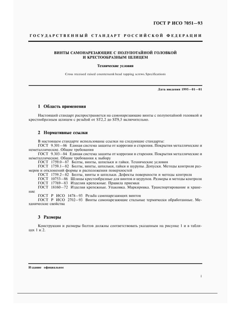 T0 CT P HC07051-93TOCyHAPCTBEHHbIN CTAHIAPT POCCMHCKON EIEPAUNNBMHTbI CAMOHAPE3AIOIIIMECΠOJIyΠOTANHON TOJIOBKONM KPECTOOBPA3HEIM IIIINIIEMTexHHyecKHe ycJoBHaM3 anme o中HMa,IbHoeTOCCTAHIAPT POCCHHM o c K B a