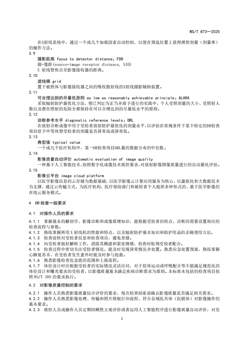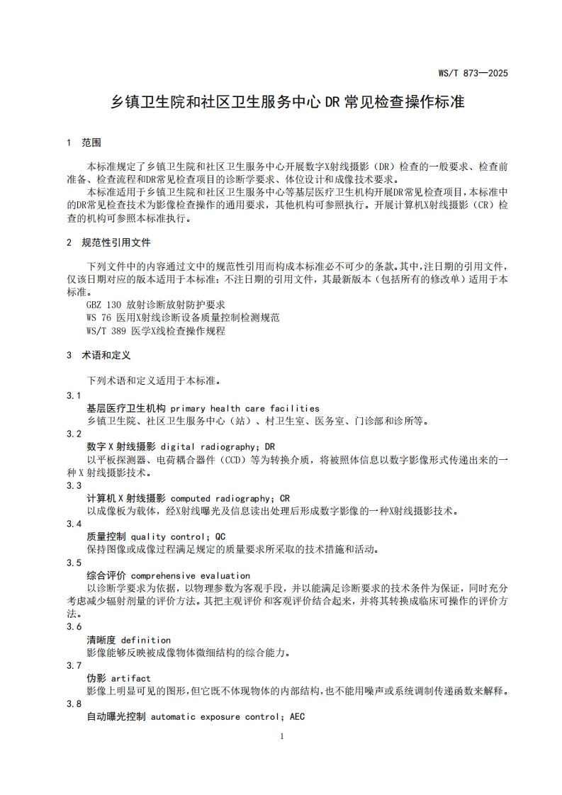 WST873—2025-20250930105453980348072@abc11天前发布关注私信0.38MB21页031WST873—2025-20250930105453980此内容为付费资源,请付费后查看¥49¥69黄金会员免费钻石会员免费立即购买您当前未登录!建议登陆后购买,可保存购买订单付费资源 第1页 / 共21页 第2页 / 共21页 第3页 / 共21页 第4页 / 共21页 第5页 / 共21页 试读已结束,还剩16页,您可下载完整版后进行离线阅读 THE END标准规范 文本预览 ICS11.020CCS C 05WS中华人民共和国卫生行业标准WS/T873-2025乡镇卫生院和社区卫生服务中心DR常见检查操作标准Standard for operation of common DR examinations in township hospital andcommunity health center2025-09-19发布2026-03-01实施中华人民共和国国家卫生健康委员会发布 查看更多 收起部分 喜欢就支持一下吧收藏