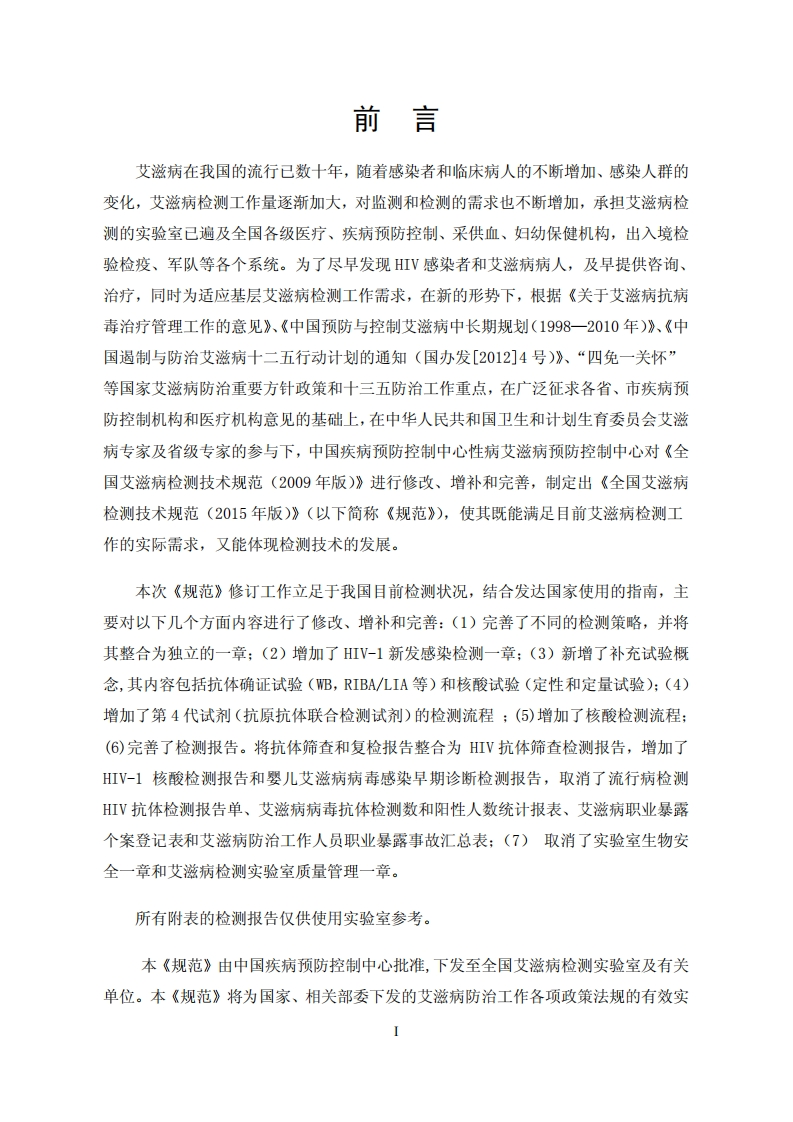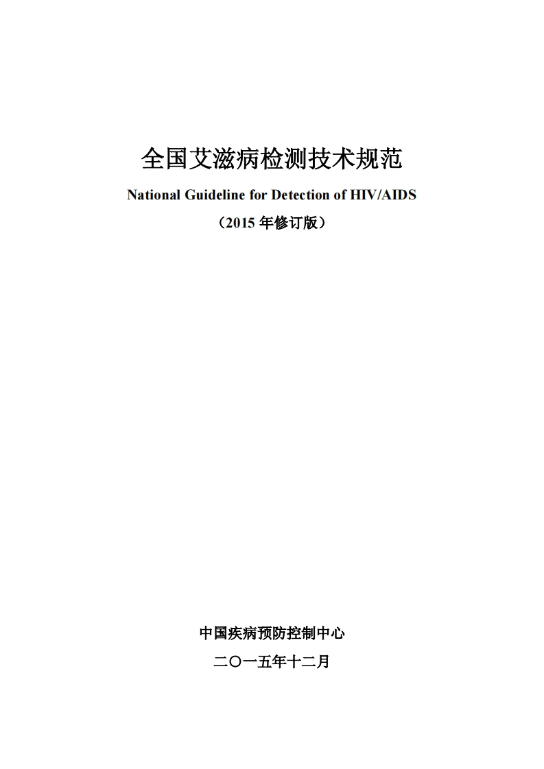 全国艾滋病检测技术规范(2015年修订版)(1)348072@abc12天前发布关注私信1MB78页029全国艾滋病检测技术规范(2015年修订版)(1)此内容为付费资源,请付费后查看¥49¥69黄金会员免费钻石会员免费立即购买您当前未登录!建议登陆后购买,可保存购买订单付费资源 第1页 / 共78页 第2页 / 共78页 第3页 / 共78页 第4页 / 共78页 第5页 / 共78页 试读已结束,还剩73页,您可下载完整版后进行离线阅读 THE END标准规范 文本预览 全国艾滋病检测技术规范National Guideline for Detection of HIV/AIDS(2015年修订版)CHINESEPREVENTIONCENTER FOR DISEASE CONTROI AND中国疾病预防控制中心二O一五年十二月 查看更多 收起部分 喜欢就支持一下吧收藏