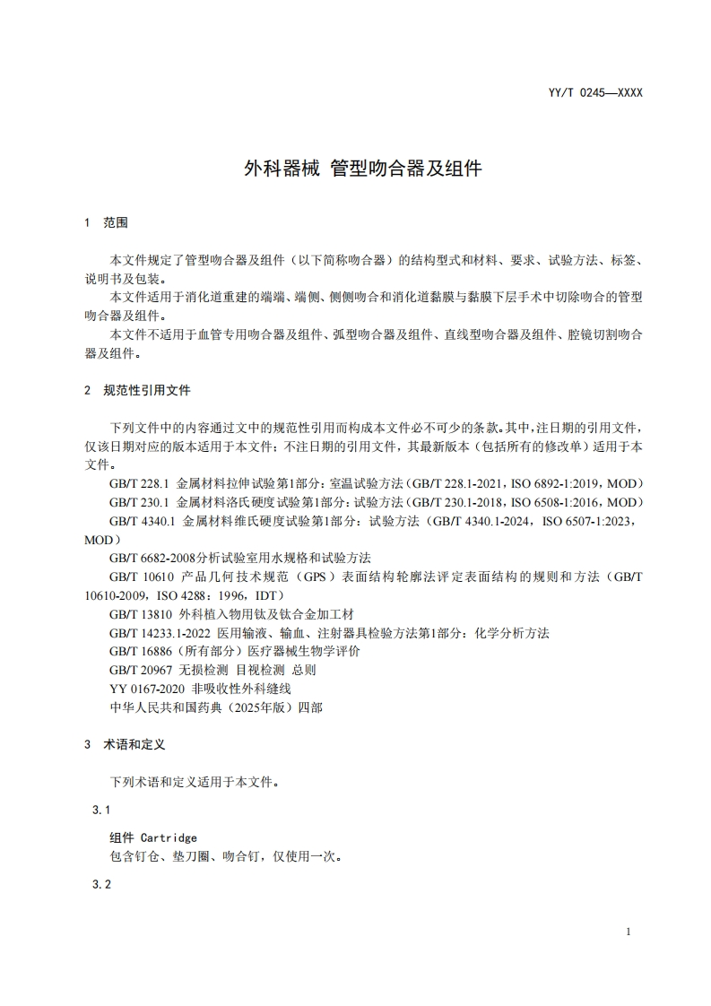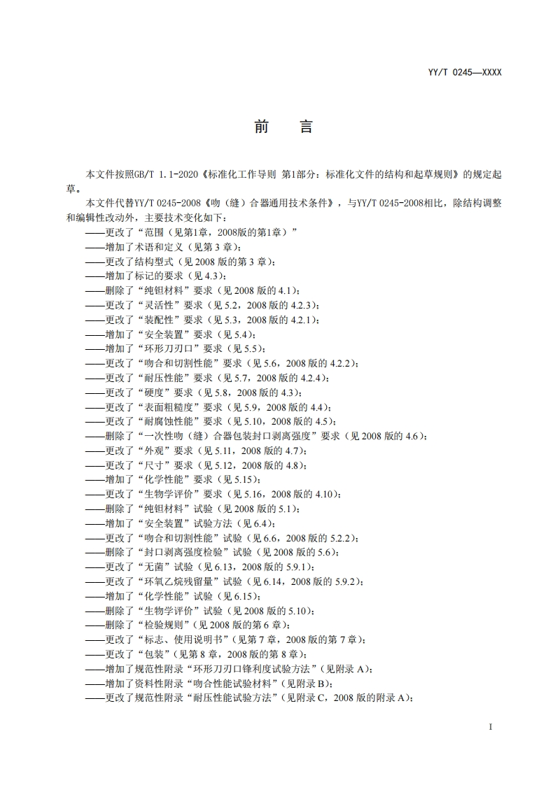外科器械管型吻合器及组件标准规范348072@abc13天前发布关注私信0.51MB19页033外科器械管型吻合器及组件标准规范此内容为付费资源,请付费后查看¥49¥69黄金会员免费钻石会员免费立即购买您当前未登录!建议登陆后购买,可保存购买订单付费资源 第1页 / 共19页 第2页 / 共19页 第3页 / 共19页 第4页 / 共19页 第5页 / 共19页 试读已结束,还剩14页,您可下载完整版后进行离线阅读 THE END标准规范 文本预览 1CS11.040.30CCS C 31中华人民共和国医药行业标准YY/T 0245-20XX代替YY/T0245-2008外科器械管型吻合器及组件Surgical instrument-Circularstapler and cartridge(征求意见稿)(本稿完成日期:2024.6.6)××××-××-××实施××××-××-××发布国家药品监督管理局发布 查看更多 收起部分 喜欢就支持一下吧收藏