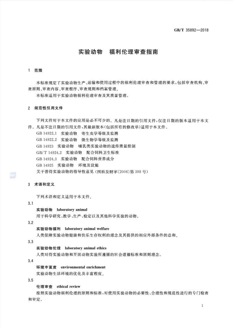 实验动物伦理审查指南348072@abc13天前发布关注私信1.75MB22页022实验动物伦理审查指南此内容为付费资源,请付费后查看¥49¥69黄金会员免费钻石会员免费立即购买您当前未登录!建议登陆后购买,可保存购买订单付费资源 第1页 / 共22页 第2页 / 共22页 第3页 / 共22页 第4页 / 共22页 第5页 / 共22页 试读已结束,还剩17页,您可下载完整版后进行离线阅读 THE END标准规范 文本预览 ICs65.020.30B44GB中华人民共和国国家标准GB/T35892-2018实验动物福利伦理审查指南Laboratory animal-Guideline for ethical review of animal welfare2018-02-06发布2018-09-01实施中华人民共和国国家质量监督检验检疫总局中国国家标准化管理委员会发布 查看更多 收起部分 喜欢就支持一下吧收藏