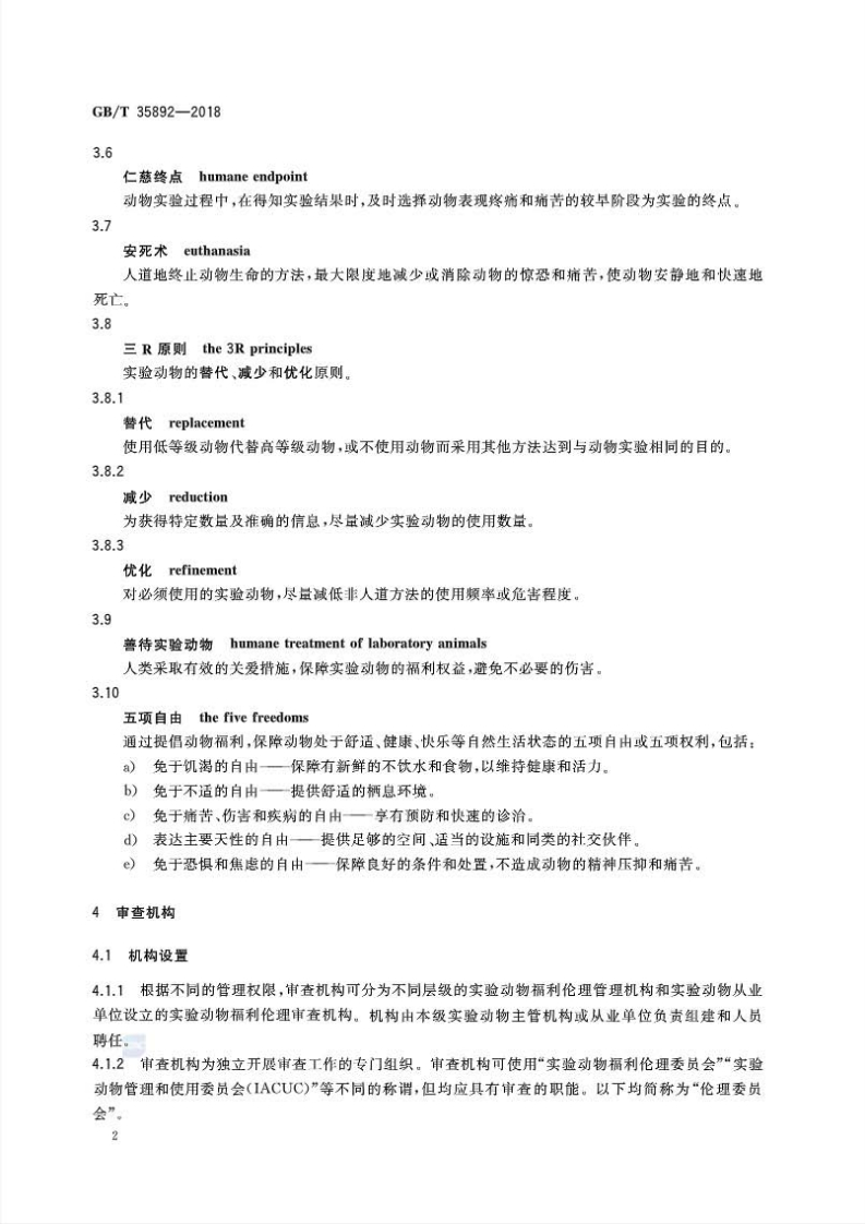 实验动物福利伦理审查指南(1)348072@abc13天前发布关注私信1.75MB22页030实验动物福利伦理审查指南(1)此内容为付费资源,请付费后查看¥49¥69黄金会员免费钻石会员免费立即购买您当前未登录!建议登陆后购买,可保存购买订单付费资源 第1页 / 共22页 第2页 / 共22页 第3页 / 共22页 第4页 / 共22页 第5页 / 共22页 试读已结束,还剩17页,您可下载完整版后进行离线阅读 THE END标准规范 文本预览 ICs65.020.30B44GB中华人民共和国国家标准GB/T35892-2018实验动物福利伦理审查指南Laboratory animal-Guideline for ethical review of animal welfare2018-02-06发布2018-09-01实施中华人民共和国国家质量监督检验检疫总局中国国家标准化管理委员会发布 查看更多 收起部分 喜欢就支持一下吧收藏