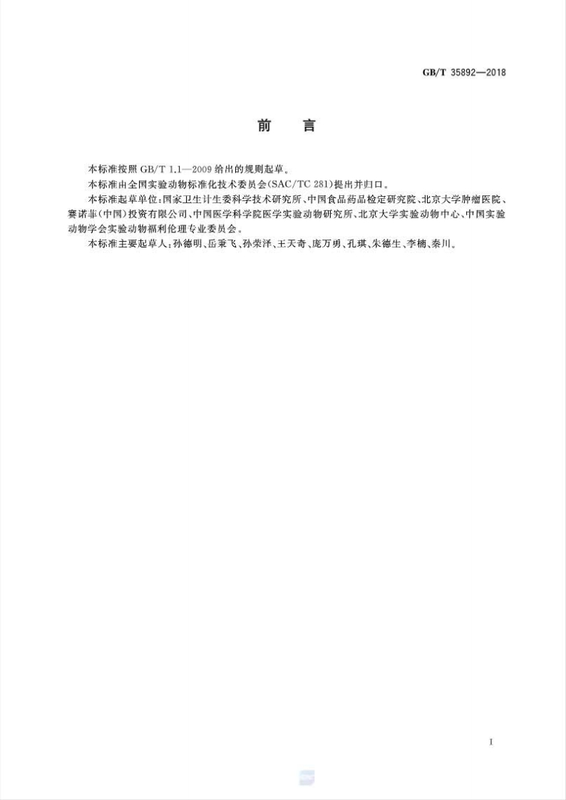 实验动物福利伦理审查指南348072@abc13天前发布关注私信1.75MB22页026实验动物福利伦理审查指南此内容为付费资源,请付费后查看¥49¥69黄金会员免费钻石会员免费立即购买您当前未登录!建议登陆后购买,可保存购买订单付费资源 第1页 / 共22页 第2页 / 共22页 第3页 / 共22页 第4页 / 共22页 第5页 / 共22页 试读已结束,还剩17页,您可下载完整版后进行离线阅读 THE END标准规范 文本预览 ICs65.020.30B44GB中华人民共和国国家标准GB/T35892-2018实验动物福利伦理审查指南Laboratory animal-Guideline for ethical review of animal welfare2018-02-06发布2018-09-01实施中华人民共和国国家质量监督检验检疫总局中国国家标准化管理委员会发布 查看更多 收起部分 喜欢就支持一下吧收藏
