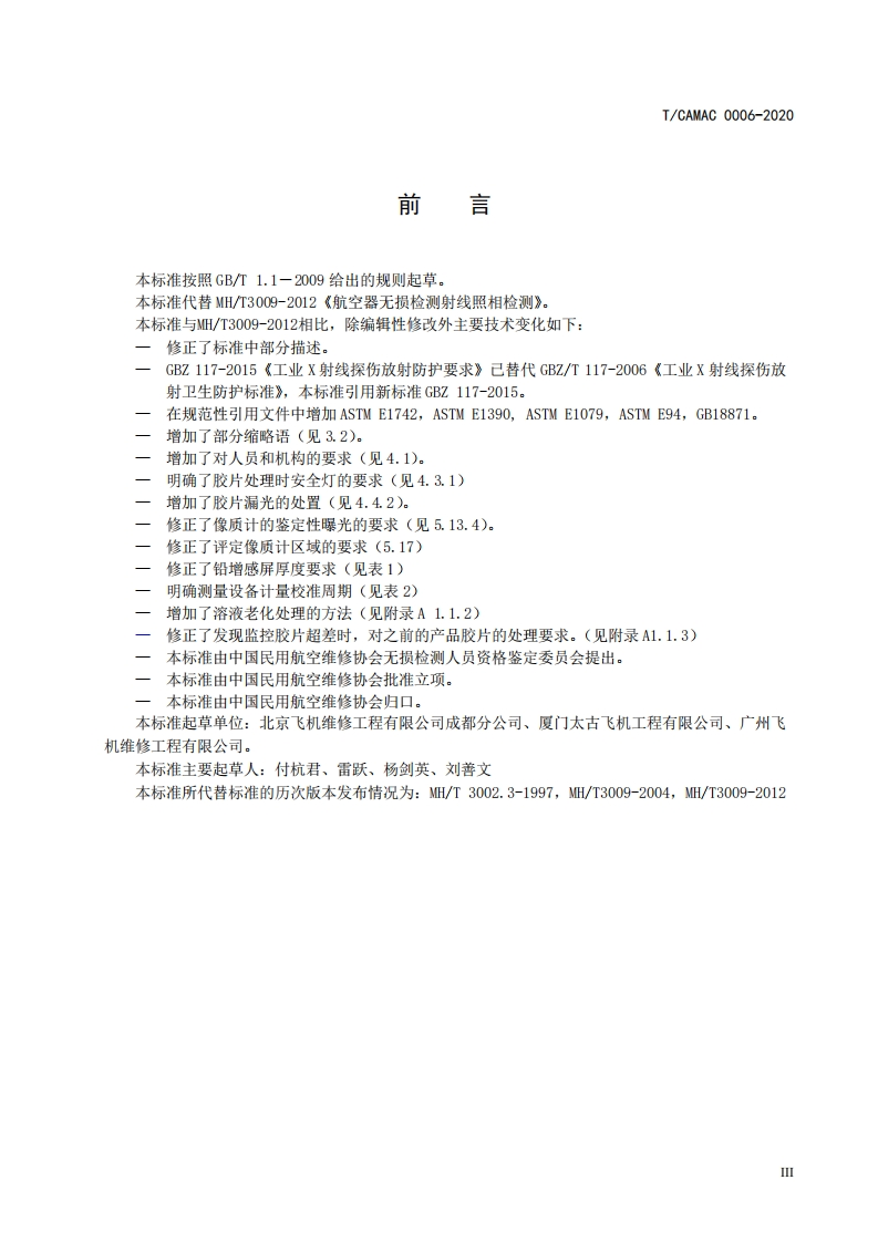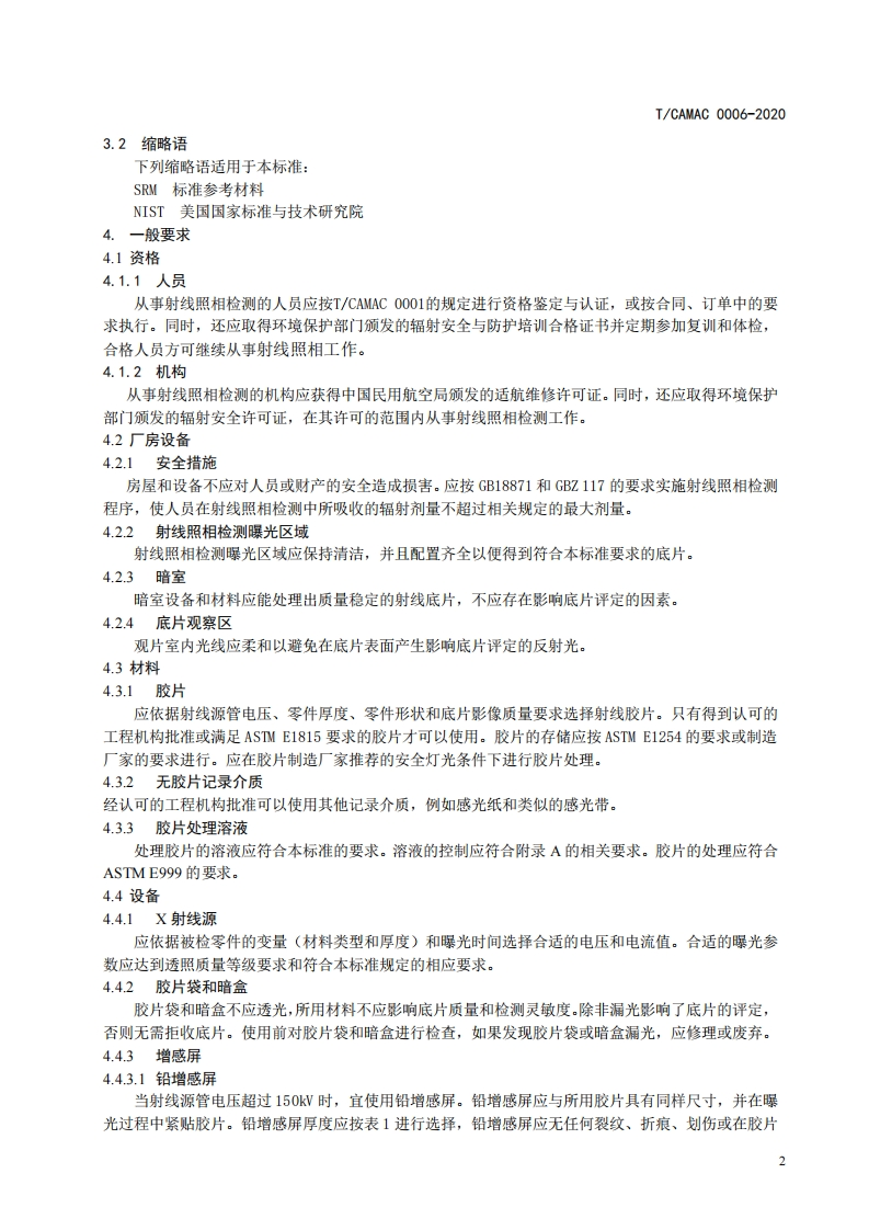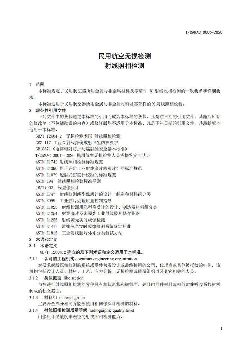 民用航空无损检测射线照相检测CivilAviationNondestructiveTestingRadiographicTesting348072@abc14天前发布关注私信0.59MB21页049民用航空无损检测射线照相检测CivilAviationNondestructiveTestingRadiographicTesting此内容为付费资源,请付费后查看¥49¥69黄金会员免费钻石会员免费立即购买您当前未登录!建议登陆后购买,可保存购买订单付费资源 第1页 / 共21页 第2页 / 共21页 第3页 / 共21页 第4页 / 共21页 第5页 / 共21页 试读已结束,还剩16页,您可下载完整版后进行离线阅读 THE END标准规范 文本预览 1Cs:19.100CCS:H26团体标准T/CAMAC0006-2020民用航空无损检测射线照相检测Civil Aviation Nondestructive TestingRadiographic Testing2020年5月12日发布2020年5月18日实施中国民用航空维修协会发布 查看更多 收起部分 喜欢就支持一下吧收藏