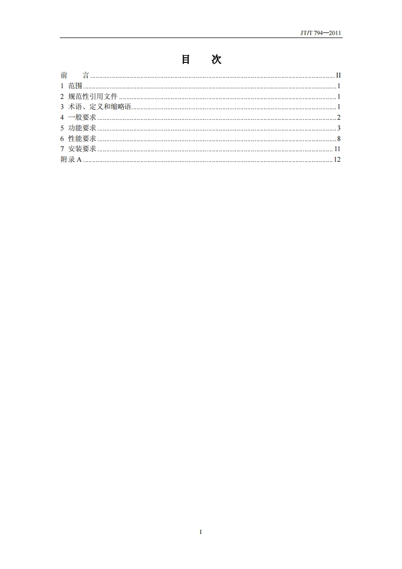 JTT794-2011道路运输车辆卫星定位系统车载终端技术要求348072@abc4个月前发布关注私信0.20MB15页035JTT794-2011道路运输车辆卫星定位系统车载终端技术要求此内容为付费资源,请付费后查看¥13¥23黄金会员免费钻石会员免费立即购买您当前未登录!建议登陆后购买,可保存购买订单付费资源 第1页 / 共15页 第2页 / 共15页 试读已结束,还剩13页,您可下载完整版后进行离线阅读 THE END标准规范 文本预览 ICS03.220.20:33.040.40M32JT中华人民共和国交通运输行业标准JT/T794一2011道路运输车辆卫星定位系统车载终端技术要求GNSS syst em for oper at ing vehicles-Techni cal specifi cat ions for vehi clet ermi nal s2011-02-28发布2011-05-08实施中华人民共和国交通运输部发布 查看更多 收起部分 喜欢就支持一下吧收藏