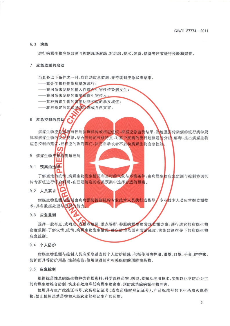 病媒生物应急监测监测与控制通则348072@abc13天前发布关注私信2.79MB7页035病媒生物应急监测监测与控制通则此内容为付费资源,请付费后查看¥49¥69黄金会员免费钻石会员免费立即购买您当前未登录!建议登陆后购买,可保存购买订单付费资源 第1页 / 共7页 第2页 / 共7页 第3页 / 共7页 第4页 / 共7页 第5页 / 共7页 试读已结束,还剩2页,您可下载完整版后进行离线阅读 THE END标准规范 文本预览 ICS11.020C05中华人民共和国国家标准GB/T27774-2011病媒生物应急监测与控制通则Vector surveillance and control in emergencies-General rules2011-12-30发布2012-04-01实施中华人民共和国卫生部中国国家标准化管理委员会发布 查看更多 收起部分 喜欢就支持一下吧收藏