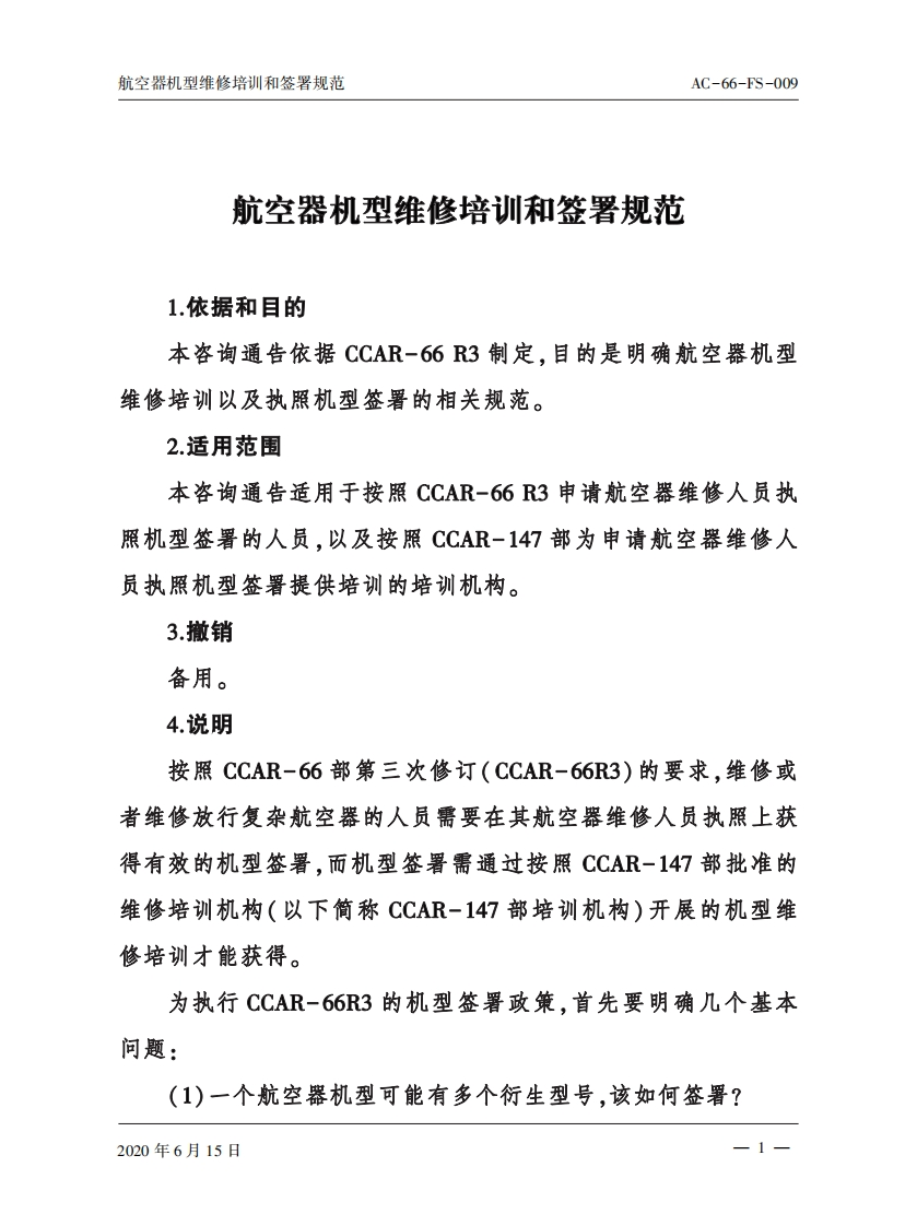 编号_AC-66-FS-009下发日期_2020年6月15日航空器机型维修培训和签署规范348072@abc12天前发布关注私信0.53MB23页045编号_AC-66-FS-009下发日期_2020年6月15日航空器机型维修培训和签署规范此内容为付费资源,请付费后查看¥49¥69黄金会员免费钻石会员免费立即购买您当前未登录!建议登陆后购买,可保存购买订单付费资源 第1页 / 共23页 第2页 / 共23页 第3页 / 共23页 第4页 / 共23页 第5页 / 共23页 试读已结束,还剩18页,您可下载完整版后进行离线阅读 THE END标准规范 文本预览 咨询通告中国民用航空局文号:民航规〔2020〕17号编号:AC-66-FS-009下发日期:2020年6月15日航空器机型维修培训和签署规范 查看更多 收起部分 喜欢就支持一下吧收藏