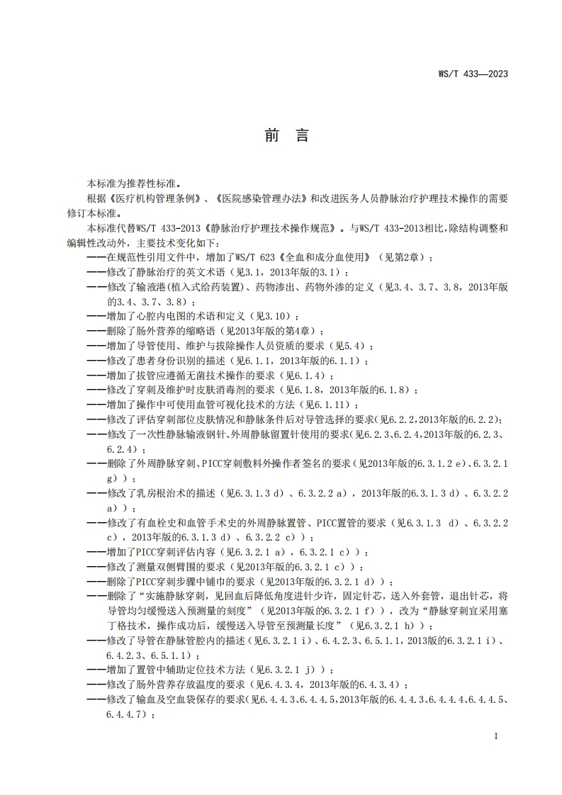静脉治疗护理技术操作标准WST433-2023348072@abc11天前发布关注私信0.28MB12页025静脉治疗护理技术操作标准WST433-2023此内容为付费资源,请付费后查看¥49¥69黄金会员免费钻石会员免费立即购买您当前未登录!建议登陆后购买,可保存购买订单付费资源 第1页 / 共12页 第2页 / 共12页 第3页 / 共12页 第4页 / 共12页 第5页 / 共12页 试读已结束,还剩7页,您可下载完整版后进行离线阅读 THE END标准规范 文本预览 ICS11.020CCS C50WS中华人民共和国卫生行业标准WS/T433-2023代替WS/T433-2013静脉治疗护理技术操作标准Nursing practice standard for intravenous therapy2023-08-29发布2024-02-01实施中华人民共和国国家卫生健康委员会发布 查看更多 收起部分 喜欢就支持一下吧收藏