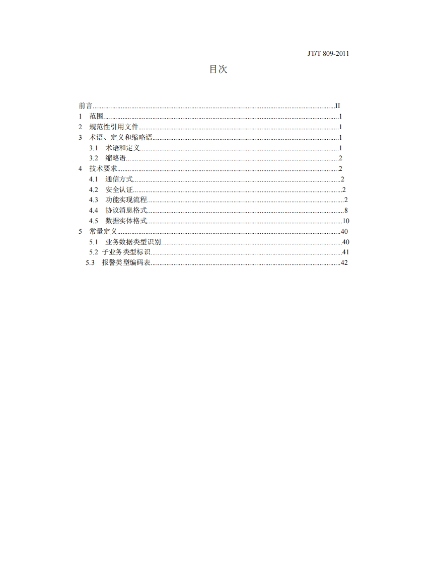 ICS03.220.20,30.210.60L78备案号:JT中华人民共和国交通运输行业标准JT/T809-2011道路运输车辆卫星定位系统平台数据交换GNSS system for operating vehicles-General specifications for data exchange between platforms(报批稿)2011-05-23发布2011-08-01实施中华人民共和国交通运输部发布