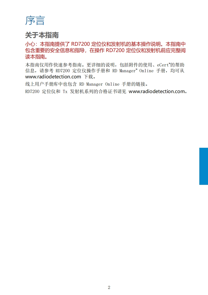 RD7200雷迪金属管线探测仪–操作使用手册348072@abc前天发布关注私信1.58MB19页045RD7200雷迪金属管线探测仪–操作使用手册此内容为付费资源,请付费后查看¥19¥29黄金会员免费钻石会员免费立即购买您当前未登录!建议登陆后购买,可保存购买订单付费资源 第1页 / 共19页 第2页 / 共19页 第3页 / 共19页 试读已结束,还剩16页,您可下载完整版后进行离线阅读 THE END仪器仪表 文本预览 捷通智创QUICKDETECTIONRD7200"Utility cable and pipe locator rangeUser GuideGuia del usuarioGuide d'utilisationNavod k pouziti用户指南GebruikershandleidingBedienungsanleitung6W小90/RD7200-UG-INT/03:RD72000720婴-10SPX攒 查看更多 收起部分 喜欢就支持一下吧收藏