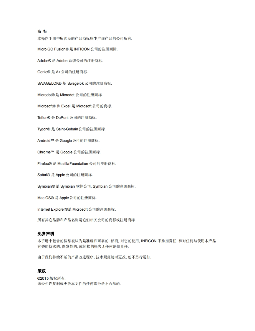 德国英福康气体分析仪MicroGCFusion–操作手册348072@abc3天前发布关注私信15.68MB236页042德国英福康气体分析仪MicroGCFusion–操作手册此内容为付费资源,请付费后查看¥19¥29黄金会员免费钻石会员免费立即购买您当前未登录!建议登陆后购买,可保存购买订单付费资源 第1页 / 共236页 第2页 / 共236页 第3页 / 共236页 试读已结束,还剩233页,您可下载完整版后进行离线阅读 THE END仪器仪表 文本预览 操作手册INFICONnINFICON MiGro GC FUSionMicro GC Fusion气体分析仪PN074-594-P1D捷通智创QUICKDETECTION 查看更多 收起部分 喜欢就支持一下吧收藏