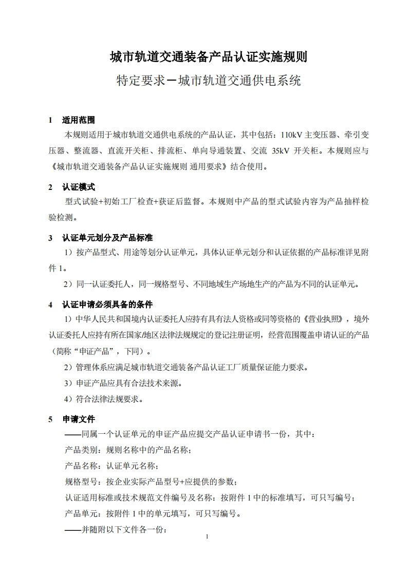 2特定要求-城市轨道交通供电系统348072@abc9天前发布关注私信0.61MB24页0282特定要求-城市轨道交通供电系统此内容为付费资源,请付费后查看¥19¥29黄金会员免费钻石会员免费立即购买您当前未登录!建议登陆后购买,可保存购买订单付费资源 第1页 / 共24页 第2页 / 共24页 第3页 / 共24页 第4页 / 共24页 第5页 / 共24页 试读已结束,还剩19页,您可下载完整版后进行离线阅读 THE END标准规范 文本预览 城市轨道交通装备产品认证实施规则编号:CNCA-CURC-10:2023特定要求一城市轨道交通供电系统2023年10月31日发布2023年10月31日实施国家认证认可监督管理委员会发布 查看更多 收起部分 喜欢就支持一下吧收藏