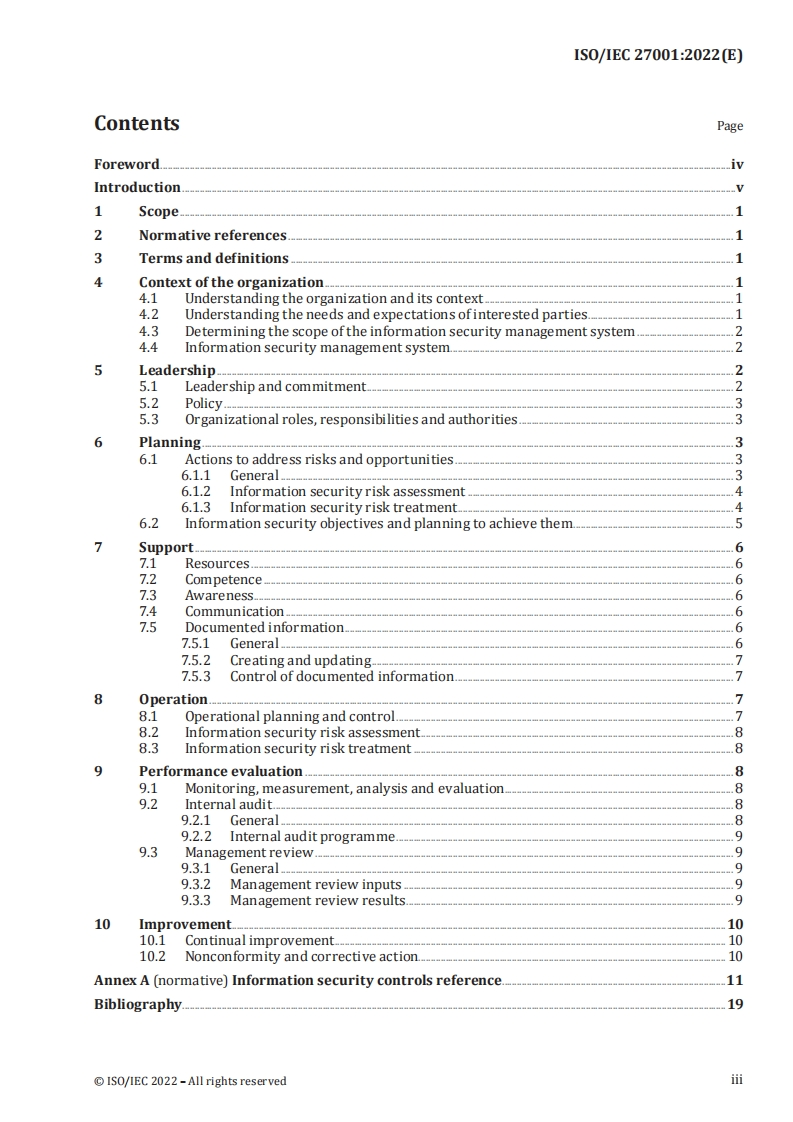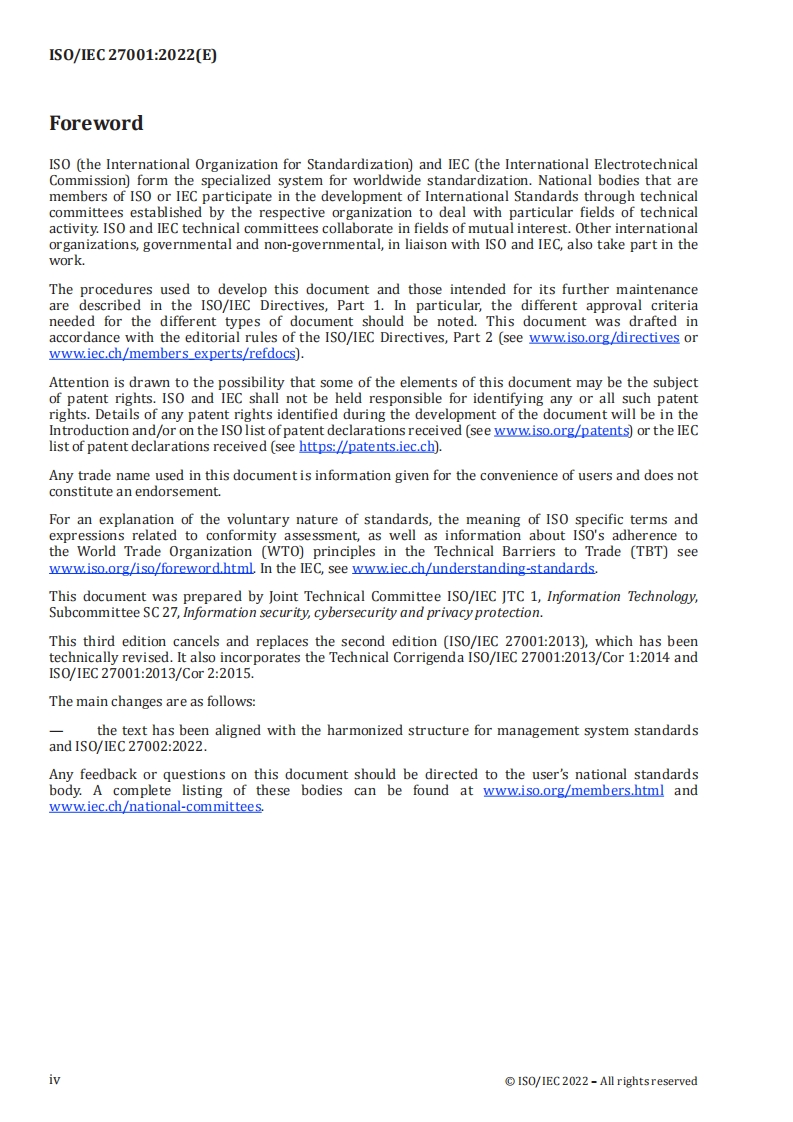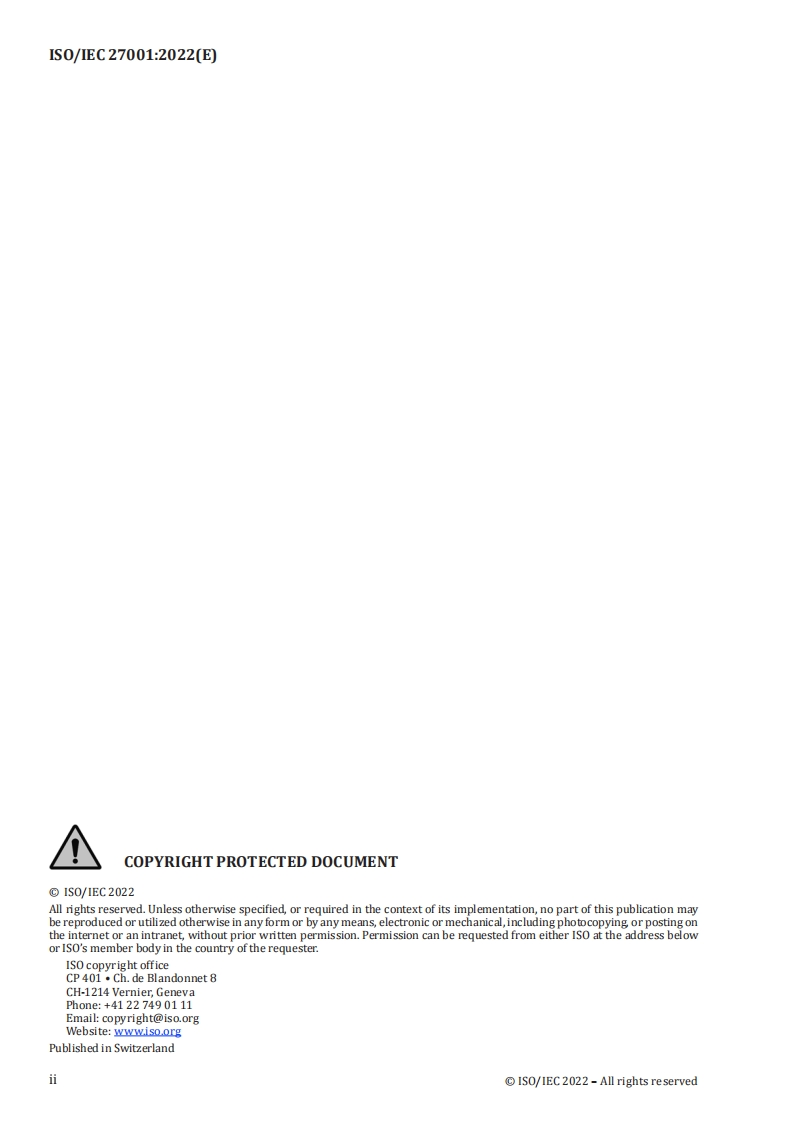 INTERNATIONALISO/IECSTANDARD27001Third edition2022-10Information security,cybersecurityand privacy protection -Informationsecurity management systems-RequirementsSecurite de l'information,cybersecurite et protection de la vieprivee-Systemes de management de la securite de l'information-Exigences⑧Reference numbergIS0/1EC27001:2022(E)©IS0/IEC2022