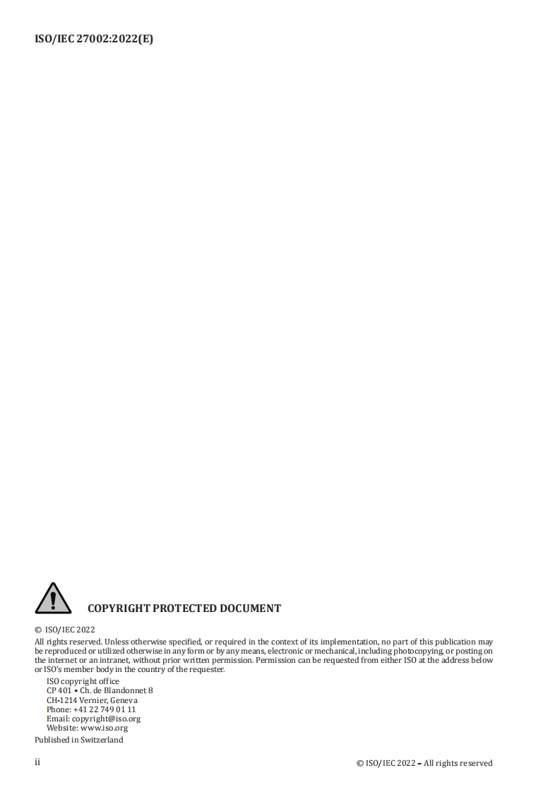 INTERNATIONALISO/IECSTANDARD27002Third edition2022-02Information security,cybersecurityand privacy protection -Informationsecurity controlsSecurite de l'information,cybersecurite et protection de la vieprivee-Mesures de securite de l'informationReference numbergIS0/1EC27002:2022(E)©IS0/IEC2022