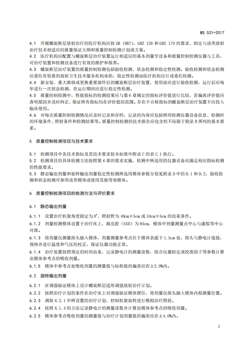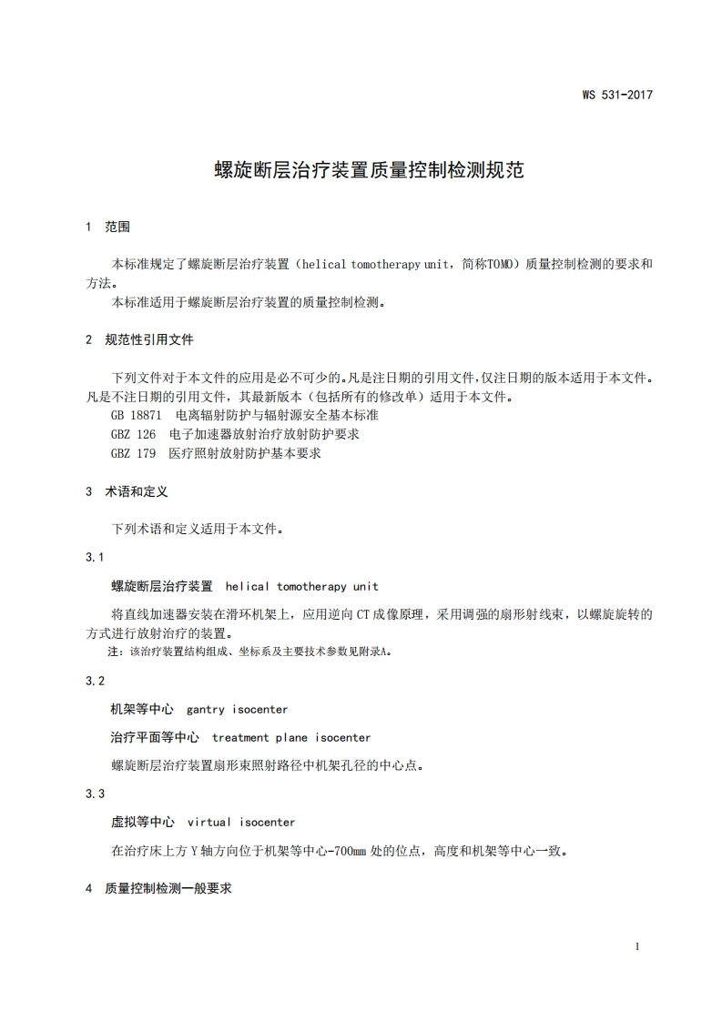 WS531-2017螺旋断层治疗装置质量控制检测规范Specificationfortestingofqualitycontrolinhelicaltomotherapyunit348072@abc11天前发布关注私信0.61MB13页024WS531-2017螺旋断层治疗装置质量控制检测规范Specificationfortestingofqualitycontrolinhelicaltomotherapyunit此内容为付费资源,请付费后查看¥19¥29黄金会员免费钻石会员免费立即购买您当前未登录!建议登陆后购买,可保存购买订单付费资源 第1页 / 共13页 第2页 / 共13页 第3页 / 共13页 第4页 / 共13页 第5页 / 共13页 试读已结束,还剩8页,您可下载完整版后进行离线阅读 THE END标准规范 文本预览 ICS13.100C57中华人民共和国卫生行业标准WS531-2017螺旋断层治疗装置质量控制检测规范Specification for testing of quality control in helical tomotherapy unit2017-04-10发布2017-10-01实施中华人民共和国国家卫生和计划生育委员会发布 查看更多 收起部分 喜欢就支持一下吧收藏