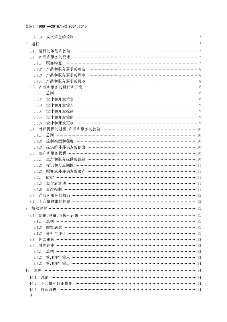 1Cs03.120.10A00中华人民共和国国家标准GB/T19001一2016/1IS09001:2015代替GB/T19001一2008质量管理体系要求Quality management systems-Requirements(IS09001:2015,IDT)2016-12-30发布2017-07-01实施中华人民共和国国家质量监督检验检疫总局发布中国国家标准化管理委员会