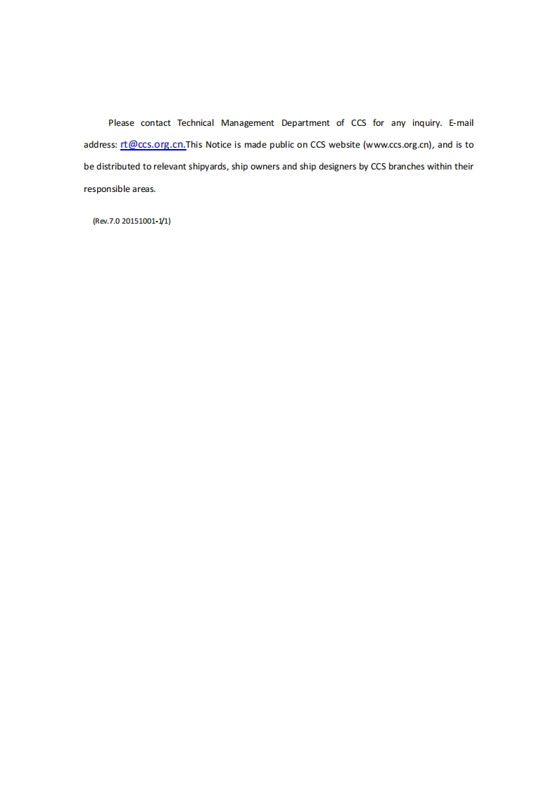 CCSTechnical Information(2017)Technical Information No.58 Total No.306Jul.31,2017(Total 2 pages)To:relevant departments of CCS Headquarters,CCS surveyors,plan approval centers,relevantship owners,shipyards and designersTechnical Notice on Amendments to the International Code for FireSafety Systems(FSS Code)(MSC.410(97))issued by IMOI.Foreword1 The Maritime Safety Committee of International Maritime Organization,at itsninety-seventh session,adopted the Amendments to the International Code for FireSafety Systems(FSS Code)(resolution MSC.410(97))relating to the requirements ofarrangement of distribution of persons required by calculation of the width of escapemeans on passenger ships on November 21,2016.The amendments will enter intoforce on January 1,2020.Il.Technical points2.1 The main contents of resolution MSC.410(97)In Case 2 in 2.1.2.2.2.1 of Chapter 13 of the revised FSS Code,"members of the crewin public spaces occupied to 13 of the maximum capacity"is amended to be"13 ofthe crew distributed in public spaces".Requirement of implementation:passenger ships constructed on and after January 1,2020 shall meet the above requirements.Annex Amendments to the International Code for Fire Safety Systems(FSS Code)MSC.410(97))(both in the original English version and Chinese version)