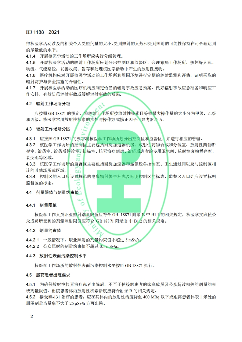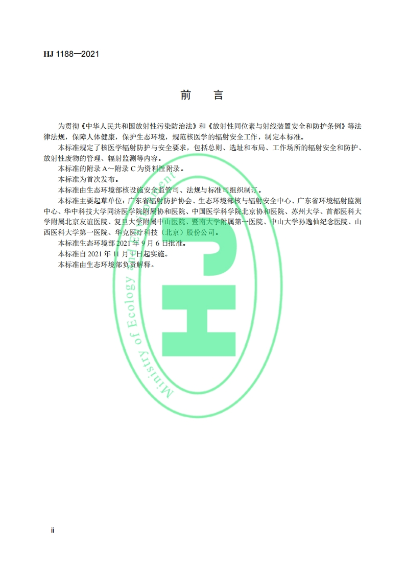 中华人民共和国国家生态环境标准HJ1188-2021onm核医学辐射防护与安全要求Radiationprotectionandsafetyrequirementsfornuclearmedicine本电子版为正式标准文本,由生态环境部环境标准研究所审校排版3oJ0dJAIS348072@abc11天前发布关注私信1.95MB13页034中华人民共和国国家生态环境标准HJ1188-2021onm核医学辐射防护与安全要求Radiationprotectionandsafetyrequirementsfornuclearmedicine本电子版为正式标准文本,由生态环境部环境标准研究所审校排版3oJ0dJAIS此内容为付费资源,请付费后查看¥19¥29黄金会员免费钻石会员免费立即购买您当前未登录!建议登陆后购买,可保存购买订单付费资源 第1页 / 共13页 第2页 / 共13页 第3页 / 共13页 第4页 / 共13页 第5页 / 共13页 试读已结束,还剩8页,您可下载完整版后进行离线阅读 THE END标准规范 文本预览 HJ中华人民共和国国家生态环境标准HJ1188-2021onment核医学辐射防护与安全要求Radiation protection and safety requirements for nuclear medicine本电子版为正式标准文本,由生态环境部环境标准研究所审校排版。Ansiuw2021-09-06发布2021-11-01实施生态环境邵发布 查看更多 收起部分 喜欢就支持一下吧收藏