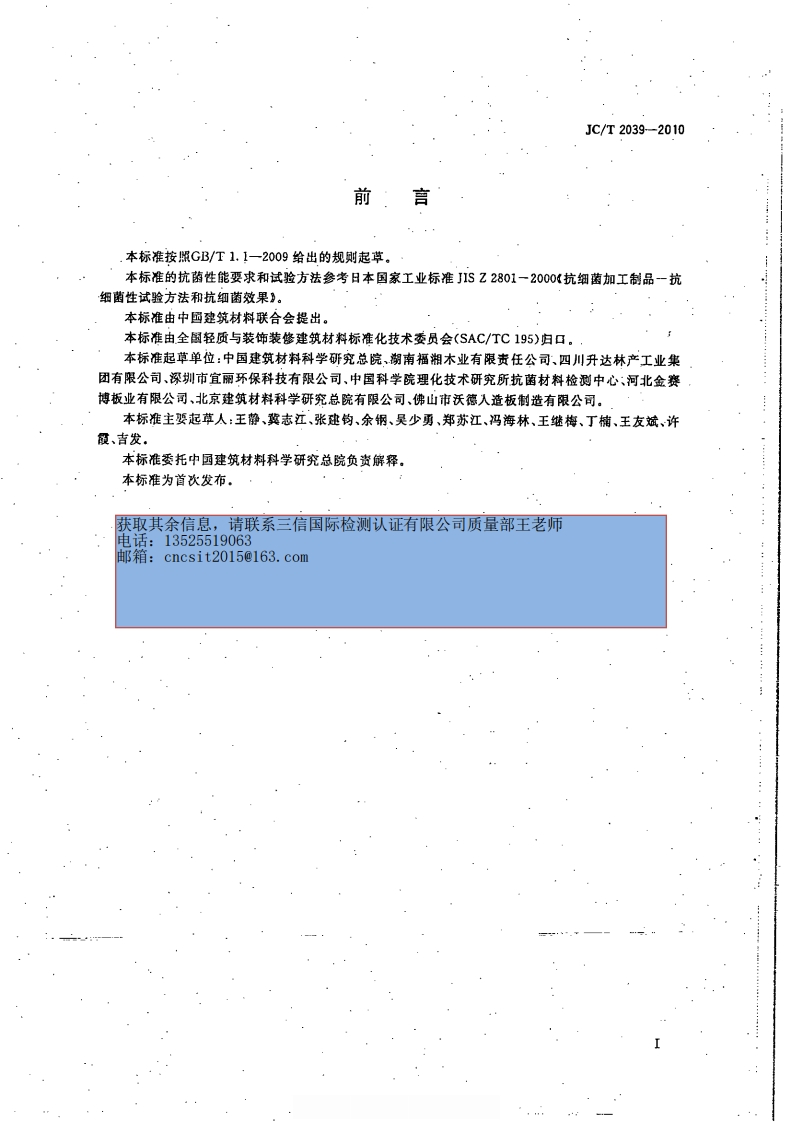 中华人民共和国建材行业标准JC_T2039-2010抗菌防霉木质装饰板_348072@abc11天前发布关注私信48.67KB2页034中华人民共和国建材行业标准JC_T2039-2010抗菌防霉木质装饰板_此内容为付费资源,请付费后查看¥19¥29黄金会员免费钻石会员免费立即购买您当前未登录!建议登陆后购买,可保存购买订单付费资源 第1页 / 共2页 第2页 / 共2页 已完成全部阅读,共2页 THE END标准规范 文本预览 ICS备案号:30081-2011JC中华人民共和国建材行业标准JC/T2039-2010抗菌防霉木质装饰板Antibacterial and mildew-proof wooden boards for decoration2010-11-22发布2011-03-01实施中华人民共和国工业和信息化部发布 查看更多 收起部分 喜欢就支持一下吧收藏