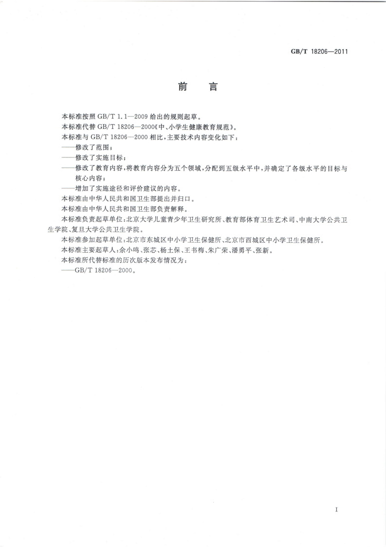 中小学健康教育规范Requirementofhealtheducationinprimaryandmiddleschool348072@abc11天前发布关注私信6.71MB17页047中小学健康教育规范Requirementofhealtheducationinprimaryandmiddleschool此内容为付费资源,请付费后查看¥19¥29黄金会员免费钻石会员免费立即购买您当前未登录!建议登陆后购买,可保存购买订单付费资源 第1页 / 共17页 第2页 / 共17页 第3页 / 共17页 第4页 / 共17页 第5页 / 共17页 试读已结束,还剩12页,您可下载完整版后进行离线阅读 THE END标准规范 文本预览 ICS13.100C56中华人民共和国国家标准GB/T18206-2011代替GB/T18206—2000中小学健康教育规范Requirement of health education in primary and middle school2011-12-30发布2012-05-01实施中华人民共和国卫生部还中国国家标准化管理委员会发布数码防伪 查看更多 收起部分 喜欢就支持一下吧收藏
