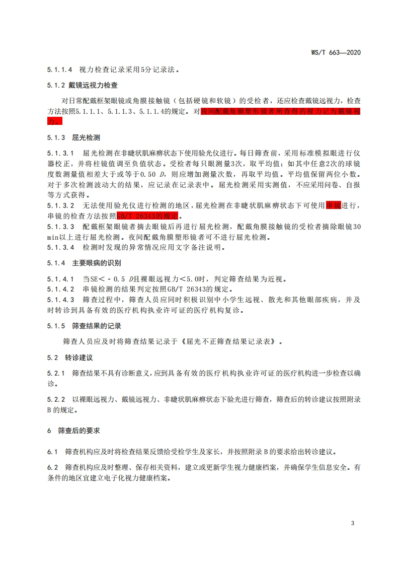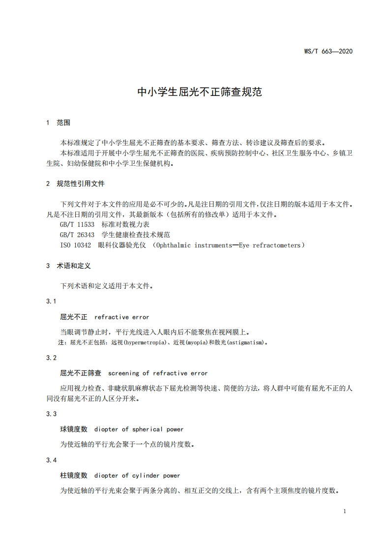 中小学生屈光不正筛查规范pecificationforscreeningofrefractiveerrorinprimaryandsecondaryschoolstudents348072@abc11天前发布关注私信0.33MB7页034中小学生屈光不正筛查规范pecificationforscreeningofrefractiveerrorinprimaryandsecondaryschoolstudents此内容为付费资源,请付费后查看¥19¥29黄金会员免费钻石会员免费立即购买您当前未登录!建议登陆后购买,可保存购买订单付费资源 第1页 / 共7页 第2页 / 共7页 第3页 / 共7页 第4页 / 共7页 第5页 / 共7页 试读已结束,还剩2页,您可下载完整版后进行离线阅读 THE END标准规范 文本预览 1CS13.100056WS中华人民共和国卫生行业标准WS/T663-2020中小学生屈光不正筛查规范Specification for screening of refractive error in primary and secondary schoolstudents2020-01-11发布2020-06-01实施中华人民共和国国家卫生健康委员会发布 查看更多 收起部分 喜欢就支持一下吧收藏
