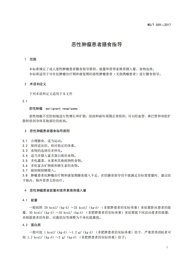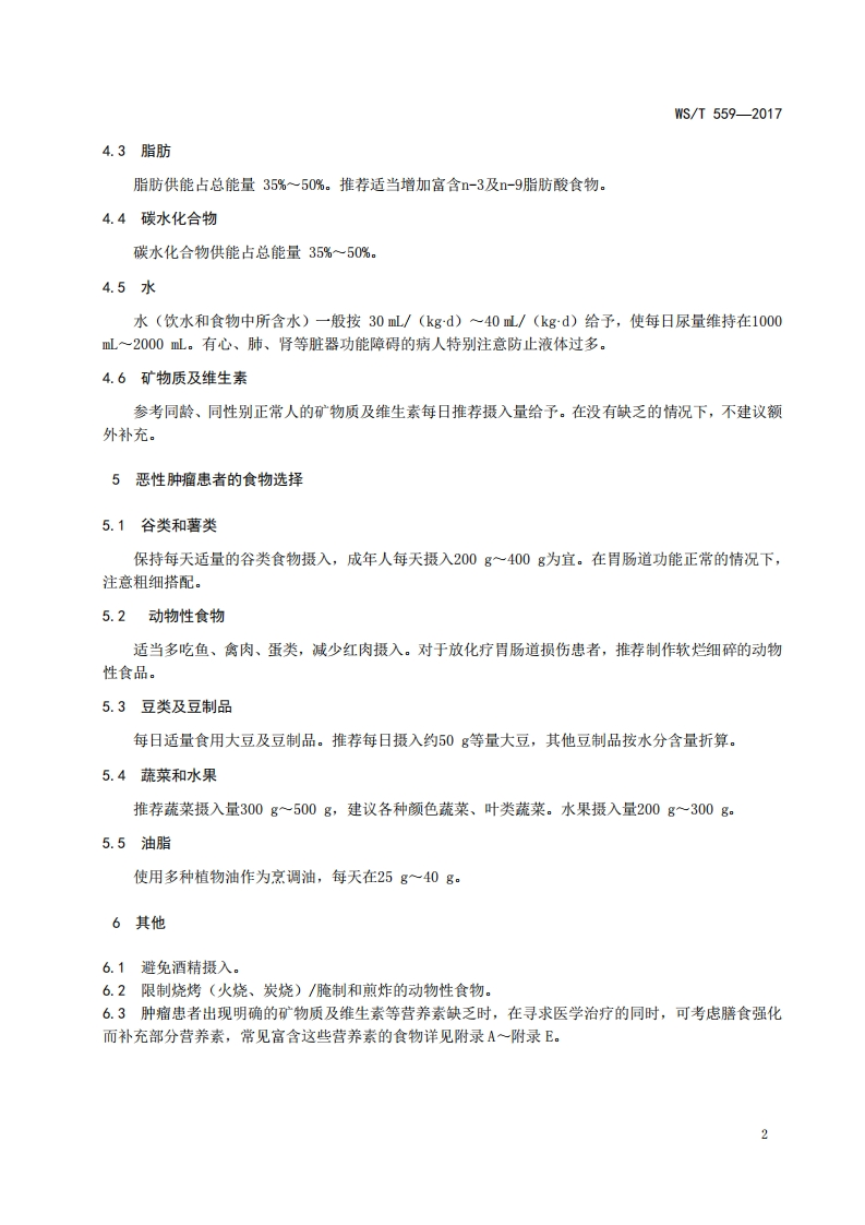 恶性肿瘤患者膳食指导Dietaryguideforcancerpatients348072@abc10天前发布关注私信0.33MB9页040恶性肿瘤患者膳食指导Dietaryguideforcancerpatients此内容为付费资源,请付费后查看¥19¥29黄金会员免费钻石会员免费立即购买您当前未登录!建议登陆后购买,可保存购买订单付费资源 第1页 / 共9页 第2页 / 共9页 第3页 / 共9页 第4页 / 共9页 第5页 / 共9页 试读已结束,还剩4页,您可下载完整版后进行离线阅读 THE END标准规范 文本预览 ICS11.020055WS中华人民共和国卫生行业标准WS/T559-2017恶性肿瘤患者膳食指导Dietary guide for cancer patients2017-08-01发布2018-02-01实施中华人民共和国国家卫生和计划生育委员会发布 查看更多 收起部分 喜欢就支持一下吧收藏