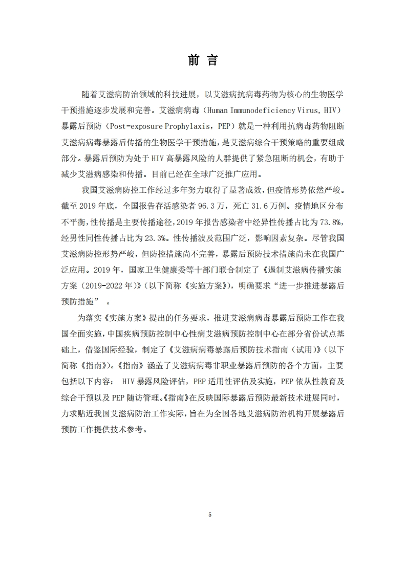 艾滋病病毒暴露后预防技术指南(试用)中国疾病预防控制中心性病艾滋病预防控制中心348072@abc9天前发布关注私信0.91MB36页043艾滋病病毒暴露后预防技术指南(试用)中国疾病预防控制中心性病艾滋病预防控制中心此内容为付费资源,请付费后查看¥19¥29黄金会员免费钻石会员免费立即购买您当前未登录!建议登陆后购买,可保存购买订单付费资源 第1页 / 共36页 第2页 / 共36页 第3页 / 共36页 第4页 / 共36页 第5页 / 共36页 试读已结束,还剩31页,您可下载完整版后进行离线阅读 THE END标准规范 文本预览 艾滋病病毒暴露后预防技术指南(试用)中国疾病预防控制中心性病艾滋病预防控制中心2020年10月 查看更多 收起部分 喜欢就支持一下吧收藏
