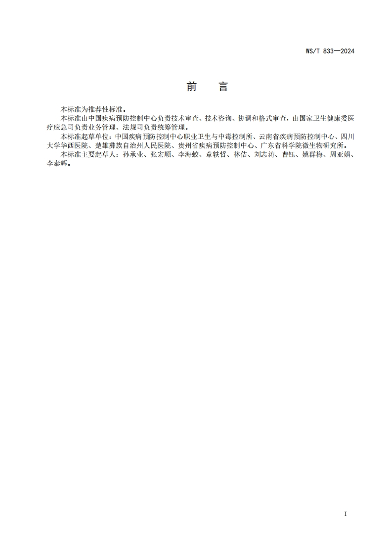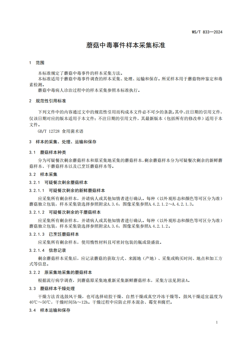 蘑菇中毒事件样本采集标准Samplecollectionstandardofmushroompoisoningincidents348072@abc9天前发布关注私信0.29MB10页047蘑菇中毒事件样本采集标准Samplecollectionstandardofmushroompoisoningincidents此内容为付费资源,请付费后查看¥19¥29黄金会员免费钻石会员免费立即购买您当前未登录!建议登陆后购买,可保存购买订单付费资源 第1页 / 共10页 第2页 / 共10页 第3页 / 共10页 第4页 / 共10页 第5页 / 共10页 试读已结束,还剩5页,您可下载完整版后进行离线阅读 THE END标准规范 文本预览 ICS11.100CCS C 05WS中华人民共和国卫生行业标准WS/T833-2024蘑菇中毒事件样本采集标准Sample collection standard of mushroom poisoning incidents2024-03-18发布2024-09-01实施中华人民共和国国家卫生健康委员会发布 查看更多 收起部分 喜欢就支持一下吧收藏