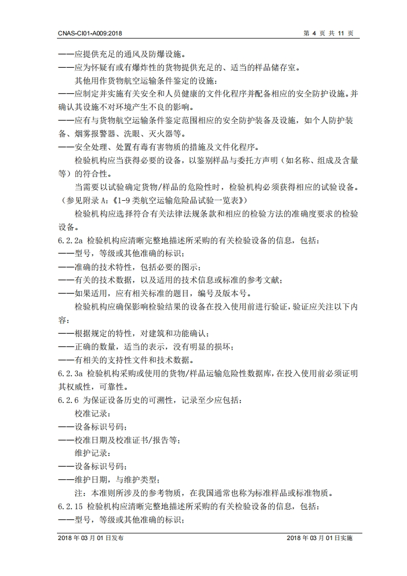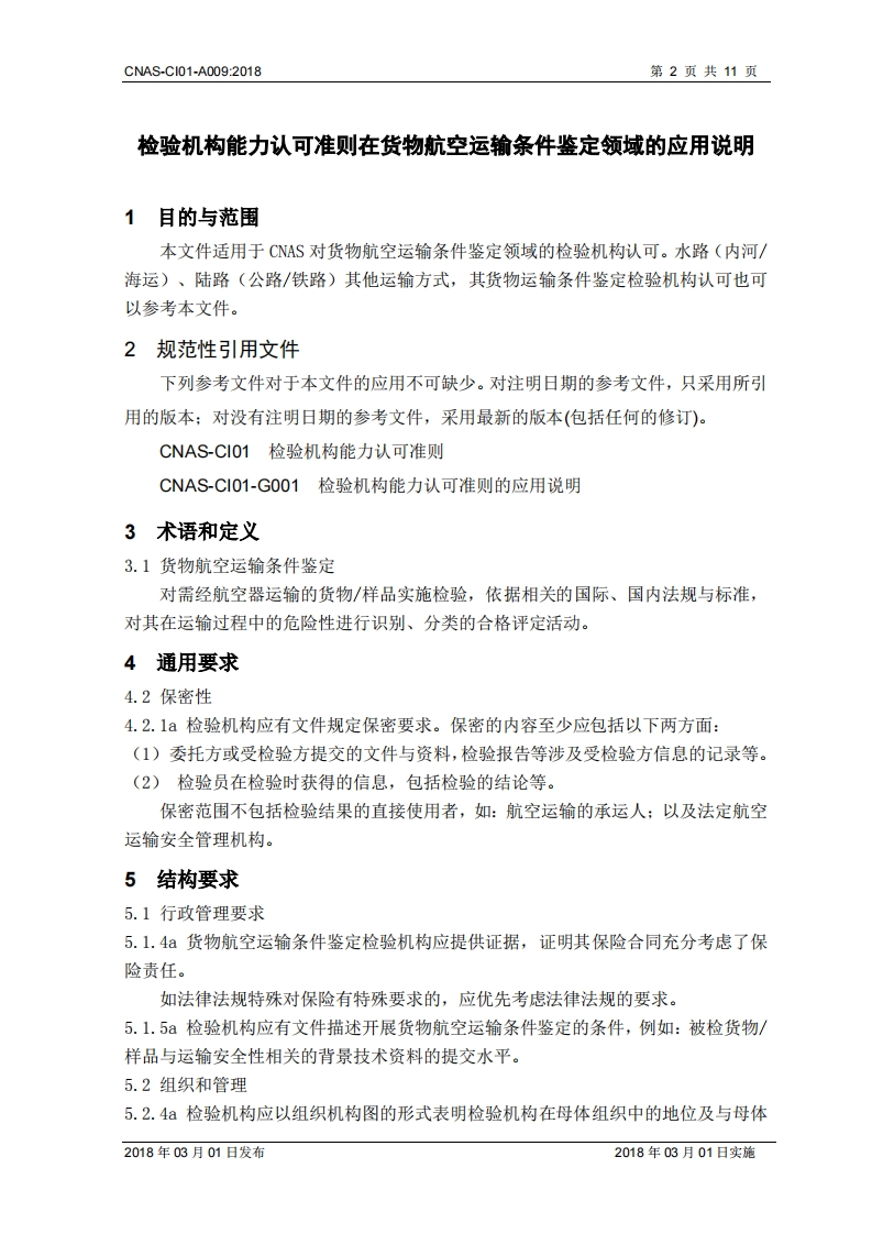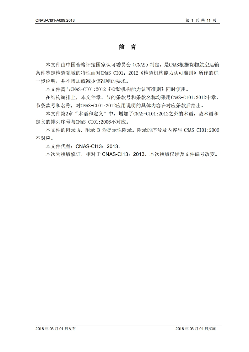 CNASCNAS-CI01-A009检验机构能力认可准则在货物航空运输条件鉴定领域的应用说明Guidance on the Application of Inspection BodyCompetence Accreditation Criteria in the Field ofTransport Condition Inspection for Air Cargo中国合格评定国家认可委员会2018年03月01日发布2018年03月01日实施