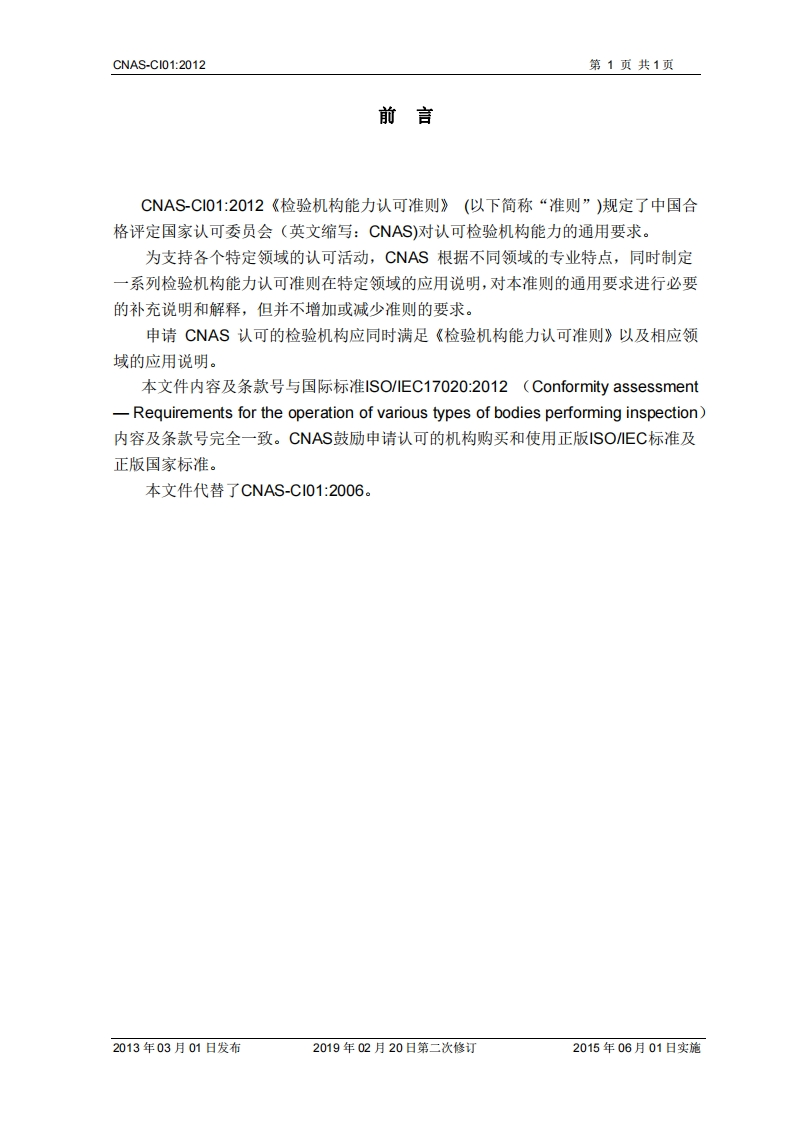 CNASCNAS-CI01检验机构能力认可准则AccreditationCriteriafortheCompetenceof_CNAS-CI01检验机构能力认可准则AccreditationCriteriafortheCompetenceofInspectionBodies348072@abc13天前发布关注私信0.58MB2页035CNASCNAS-CI01检验机构能力认可准则AccreditationCriteriafortheCompetenceof_CNAS-CI01检验机构能力认可准则AccreditationCriteriafortheCompetenceofInspectionBodies此内容为付费资源,请付费后查看¥23¥36黄金会员免费钻石会员免费立即购买您当前未登录!建议登陆后购买,可保存购买订单付费资源 第1页 / 共2页 第2页 / 共2页 已完成全部阅读,共2页 THE END标准规范 文本预览 CNASCNAS-CI01检验机构能力认可准则Accreditation Criteria for the Competence ofInspection Bodies中国合格评定国家认可委员会2013年03月01日发布2019年02月20日第二次修订2015年06月01日实施 查看更多 收起部分 喜欢就支持一下吧收藏