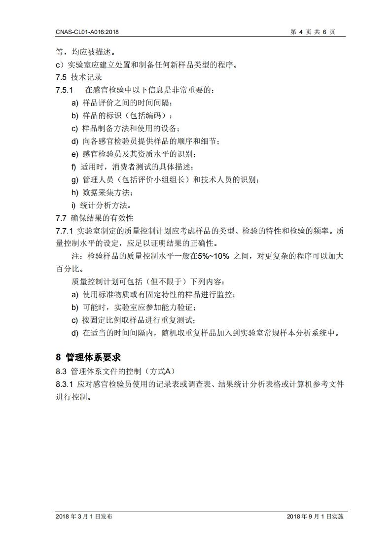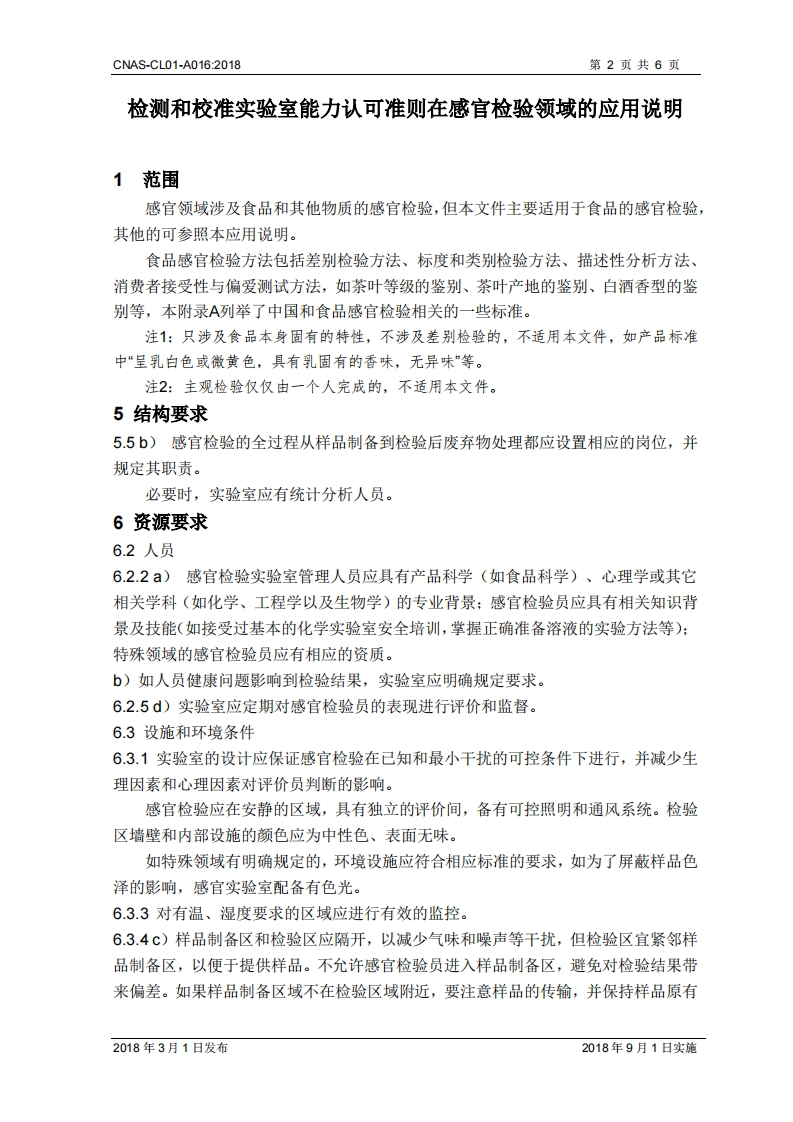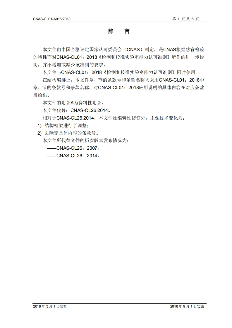 CNASCNAS-CL01-A016检测和校准实验室能力认可准则在感官检验领域的应用说明_CNAS-CL01-A016检测和校准实验室能力认可准则在感官检验领域的应用说明Guidanceontheapplicationoftestingandcalibrationporatorycompetenceaccreditationcriteriainthefieldofsensorytesting348072@abc13天前发布关注私信0.38MB7页032CNASCNAS-CL01-A016检测和校准实验室能力认可准则在感官检验领域的应用说明_CNAS-CL01-A016检测和校准实验室能力认可准则在感官检验领域的应用说明Guidanceontheapplicationoftestingandcalibrationporatorycompetenceaccreditationcriteriainthefieldofsensorytesting此内容为付费资源,请付费后查看¥23¥36黄金会员免费钻石会员免费立即购买您当前未登录!建议登陆后购买,可保存购买订单付费资源 第1页 / 共7页 第2页 / 共7页 第3页 / 共7页 第4页 / 共7页 第5页 / 共7页 试读已结束,还剩2页,您可下载完整版后进行离线阅读 THE END标准规范 文本预览 CNASCNAS-CL01-A016检测和校准实验室能力认可准则在感官检验领域的应用说明Guidance on the application of testing and calibrationlaboratory competence accreditation criteria in the field ofsensory testing中国合格评定国家认可委员会2018年3月1日发布2018年9月1日实施 查看更多 收起部分 喜欢就支持一下吧收藏