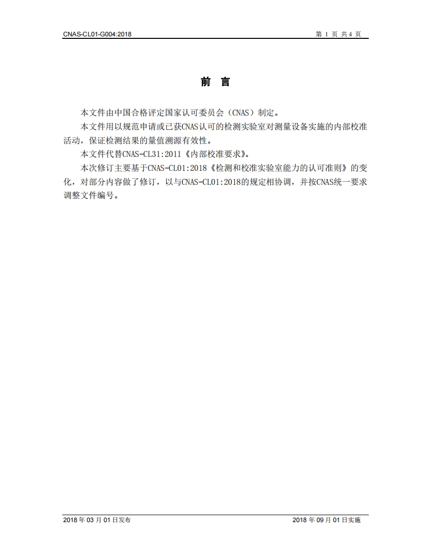 CNASCNAS-CL01-G004内部校准要求Requirementsforin-houseCalibration_CNAS-CL01-G004内部校准要求Requirementsforin-houseCalibration中国合格评定国家认可委员会348072@abc13天前发布关注私信0.26MB5页034CNASCNAS-CL01-G004内部校准要求Requirementsforin-houseCalibration_CNAS-CL01-G004内部校准要求Requirementsforin-houseCalibration中国合格评定国家认可委员会此内容为付费资源,请付费后查看¥23¥36黄金会员免费钻石会员免费立即购买您当前未登录!建议登陆后购买,可保存购买订单付费资源 第1页 / 共5页 第2页 / 共5页 第3页 / 共5页 第4页 / 共5页 第5页 / 共5页 已完成全部阅读,共5页 THE END标准规范 文本预览 CNASCNAS-CL01-G004内部校准要求Requirements for In-house Calibration中国合格评定国家认可委员会2018年03月01日发布2018年09月01日实施 查看更多 收起部分 喜欢就支持一下吧收藏