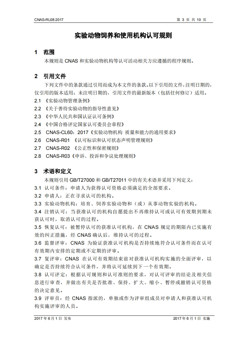 CNASCNAS-RL08实验动物饲养和使用机构认可规则esfortheaccreditationoflaboratoryanimalinstitutionscareandusing_CNAS-RL08实验动物饲养和使用机构认可规则esfortheaccreditationoflaboratoryanimalinstitutionsforcareandusing348072@abc13天前发布关注私信0.34MB11页032CNASCNAS-RL08实验动物饲养和使用机构认可规则esfortheaccreditationoflaboratoryanimalinstitutionscareandusing_CNAS-RL08实验动物饲养和使用机构认可规则esfortheaccreditationoflaboratoryanimalinstitutionsforcareandusing此内容为付费资源,请付费后查看¥23¥36黄金会员免费钻石会员免费立即购买您当前未登录!建议登陆后购买,可保存购买订单付费资源 第1页 / 共11页 第2页 / 共11页 第3页 / 共11页 第4页 / 共11页 第5页 / 共11页 试读已结束,还剩6页,您可下载完整版后进行离线阅读 THE END标准规范 文本预览 CNASCNAS-RL08实验动物饲养和使用机构认可规则Rules for the accreditation of laboratory animal institutions forcare and using中国合格评定国家认可委员会2017年6月1日发布2017年6月1日实施 查看更多 收起部分 喜欢就支持一下吧收藏