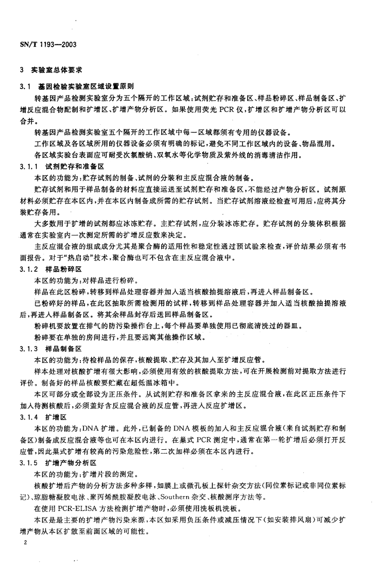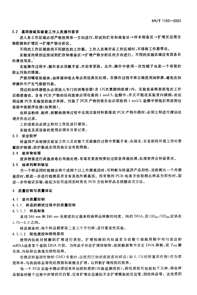 equirementsforthelaboratoriesfordetectionandidentification2003-09-01实施民共和国_2003-09-01实施民共和国人量监督检验检疫总同发布348072@abc14天前发布关注私信0.19MB6页034equirementsforthelaboratoriesfordetectionandidentification2003-09-01实施民共和国_2003-09-01实施民共和国人量监督检验检疫总同发布此内容为付费资源,请付费后查看¥23¥36黄金会员免费钻石会员免费立即购买您当前未登录!建议登陆后购买,可保存购买订单付费资源 第1页 / 共6页 第2页 / 共6页 第3页 / 共6页 第4页 / 共6页 第5页 / 共6页 试读已结束,还剩1页,您可下载完整版后进行离线阅读 THE END标准规范 文本预览 SN中华人民共和国出入境检验检疫行业标准SN/T1193-2003基因检验实验室技术要求General requirements for the laboratories forgene detection and identification2003-03-17发布2003-09-01实施中华人:民共和国国家质量监督检验检疫总局发布 查看更多 收起部分 喜欢就支持一下吧收藏