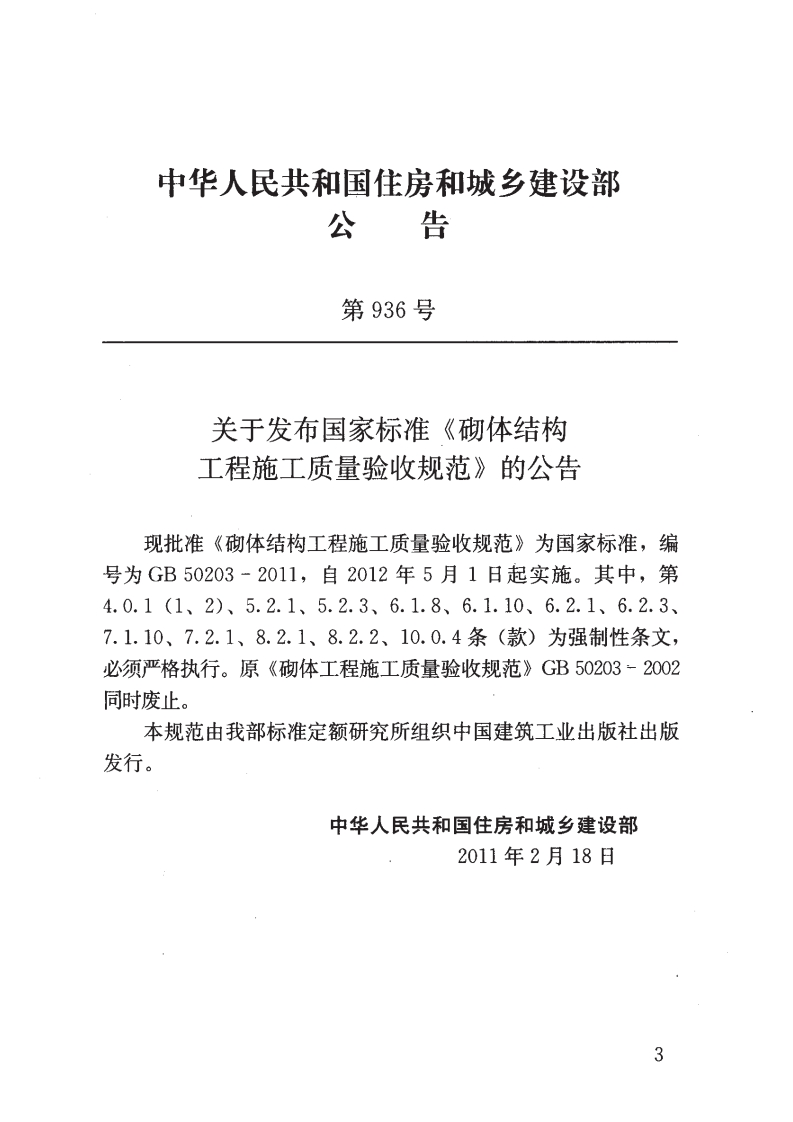 GB50203348072@abc14天前发布关注私信3.32MB92页035GB50203此内容为付费资源,请付费后查看¥23¥36黄金会员免费钻石会员免费立即购买您当前未登录!建议登陆后购买,可保存购买订单付费资源 第1页 / 共92页 第2页 / 共92页 第3页 / 共92页 第4页 / 共92页 第5页 / 共92页 试读已结束,还剩87页,您可下载完整版后进行离线阅读 THE END标准规范 文本预览 UDC中华人民共和国国家标准PGB50203-2011砌体结构工程施工质量验收规范Code for acceptance of constructionalquality of masonry structures2011-02-18发布2012-05-01实施中华人民共和国住房和城乡建设部中华人民共和国国家质量监督检验检疫总局联合发布 查看更多 收起部分 喜欢就支持一下吧收藏