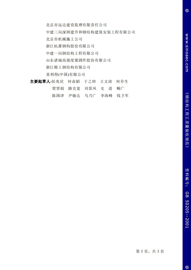 GB50205348072@abc15天前发布关注私信0.90MB106页038GB50205此内容为付费资源,请付费后查看¥23¥36黄金会员免费钻石会员免费立即购买您当前未登录!建议登陆后购买,可保存购买订单付费资源 第1页 / 共106页 第2页 / 共106页 第3页 / 共106页 第4页 / 共106页 第5页 / 共106页 试读已结束,还剩101页,您可下载完整版后进行离线阅读 THE END标准规范 文本预览 回UDC中华人民共和国国家标准PGB50205-2001www.sinoaec.com钢结构工程施工质量验收规范Code for acceptance of construction quality of steel structures2002-01一10发布2002—03—01实施中华人民共和国国家质量监督检验检疫总局中华人民共和国建设部联合发布B50205--2001第1页,共1页包 查看更多 收起部分 喜欢就支持一下吧收藏