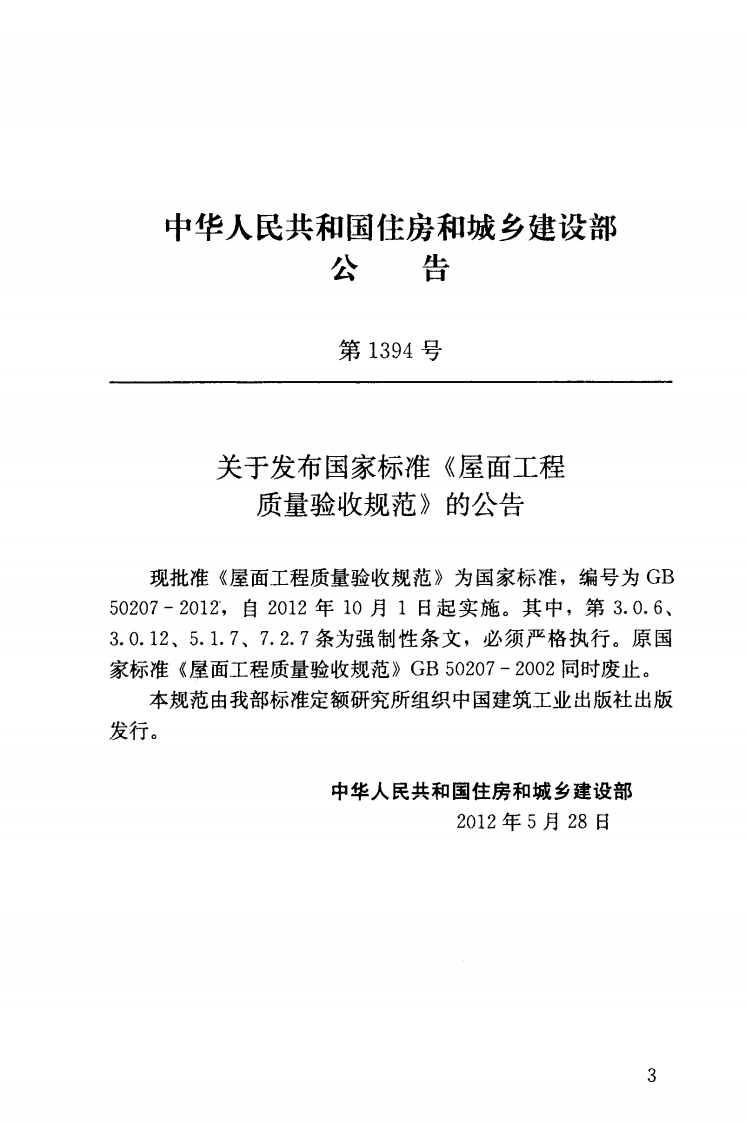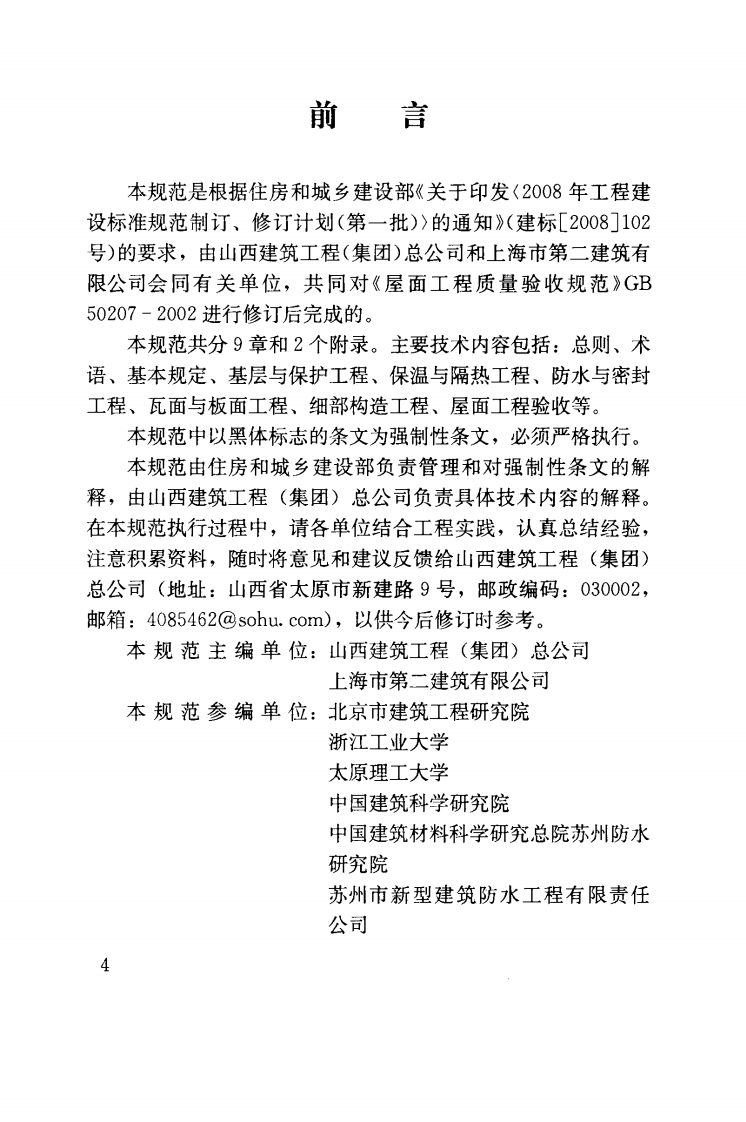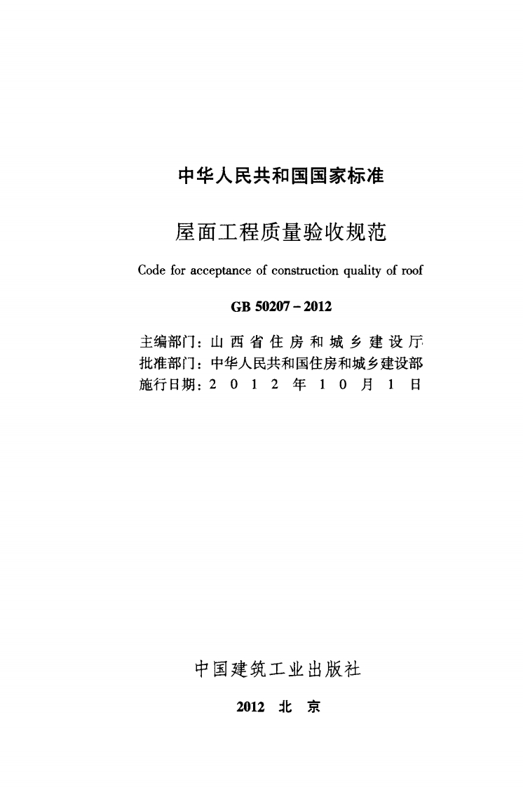 GB50207348072@abc15天前发布关注私信2.40MB130页048GB50207此内容为付费资源,请付费后查看¥23¥36黄金会员免费钻石会员免费立即购买您当前未登录!建议登陆后购买,可保存购买订单付费资源 第1页 / 共130页 第2页 / 共130页 第3页 / 共130页 第4页 / 共130页 第5页 / 共130页 试读已结束,还剩125页,您可下载完整版后进行离线阅读 THE END标准规范 文本预览 UDC中华人民共和国国家标准PGB50207-2012屋面工程质量验收规范Code for acceptance of construction quality of roof2012-05-28发布2012-10-01实施中华人民共和国住房和城乡建设部联合发布中华人民共和国国家质量监督检验检疫总局 查看更多 收起部分 喜欢就支持一下吧收藏