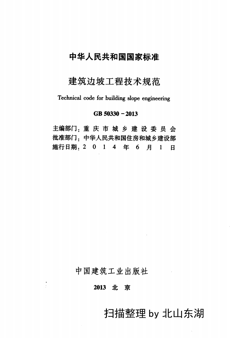GB50330348072@abc15天前发布关注私信12.80MB216页036GB50330此内容为付费资源,请付费后查看¥23¥36黄金会员免费钻石会员免费立即购买您当前未登录!建议登陆后购买,可保存购买订单付费资源 第1页 / 共216页 第2页 / 共216页 第3页 / 共216页 第4页 / 共216页 第5页 / 共216页 试读已结束,还剩211页,您可下载完整版后进行离线阅读 THE END标准规范 文本预览 UDC中华人民共和国国家标准PGB50330-2013建筑边坡工程技术规范Technical code for building slope engineering2013-11-01发布2014-06-01实施中华人民共和国住房和城乡建设部联合发布中华人民共和国国家质量监督检验检疫总局 查看更多 收起部分 喜欢就支持一下吧收藏