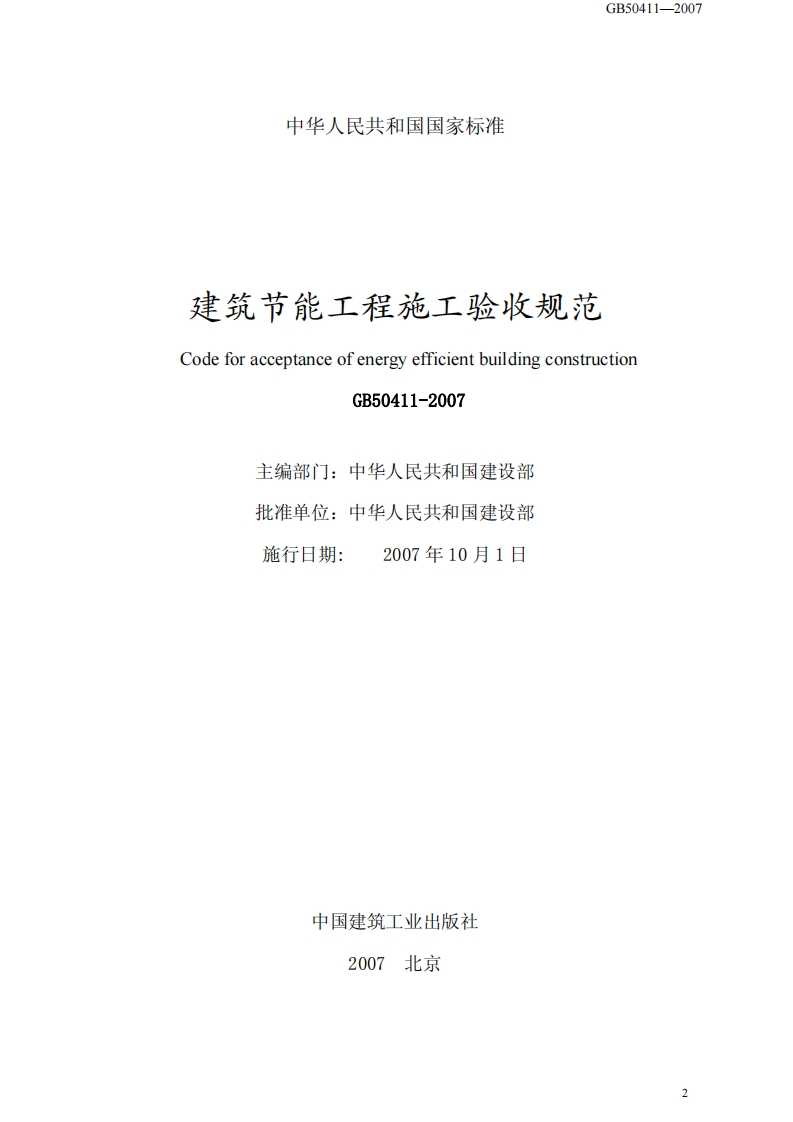gb50411348072@abc15天前发布关注私信0.65MB46页035gb50411此内容为付费资源,请付费后查看¥23¥36黄金会员免费钻石会员免费立即购买您当前未登录!建议登陆后购买,可保存购买订单付费资源 第1页 / 共46页 第2页 / 共46页 第3页 / 共46页 第4页 / 共46页 第5页 / 共46页 试读已结束,还剩41页,您可下载完整版后进行离线阅读 THE END标准规范 文本预览 UDC中华人民共和国国家标准PGB50411-2007建筑节能工程施工验收规范Code for acceptance of energy efficient building construction2007-01-16发布2007-10-01实施中华人民共和国建设部中华人民共和国国家质量监督检验检疫总局联合发布 查看更多 收起部分 喜欢就支持一下吧收藏
