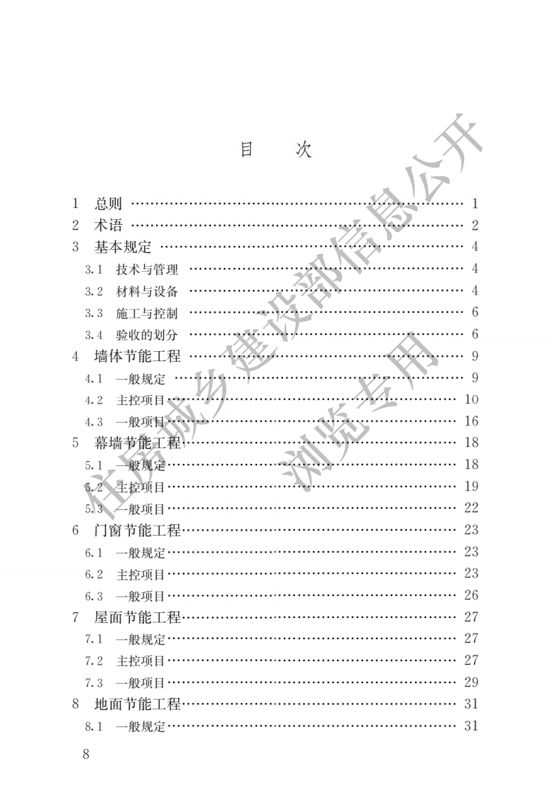 前言根据住房和城乡建设部《关于印发〈2010年丕程建设标准规范制订、修订计划〉的通知》(建标[2010]43号)的要求,标准编制组经广泛调查研究,认真总结实践经验,参考有关国际标准和国外先进标准,并在广泛征求意见的基础上,修订了本标准。本标准的主要技术内容是:。总则;2.术语;3.基本规定;4.墙体节能工程;5幕墙节能工程;6.门窗节能工程:7.屋面节能工程;8.地面节能工程;9.供暖节能①程,10.通风与空调节能工程:11,空调与供暖系统冷热源及管网节能工程;12.配电与照明节能工程;13.监测与控制节能工程;14.地源热泵换热系统节能工程;15.太阳能光热系统节能工程;16.太阳能光伏节能工程;17.建筑节能工程现场检验;18.建筑节能分部工程质量验收等。一日本标准修订的主要技术内容是:1.增加3章:1)地源热泵换热系统节能工程;2)太阳能光热系统节能工程;3)太阳能光伏节能工程。2.增加4个试验方法:1)保温材料粘贴面积比剥离检验方法;2)保温板材与基层的拉伸粘结强度现场拉拔试验方法:3)保温浆料导热系数、干密度、抗压强度同条件养护试验方法;4)中空玻璃密封性能检验方法。3.增加了以下内容:4