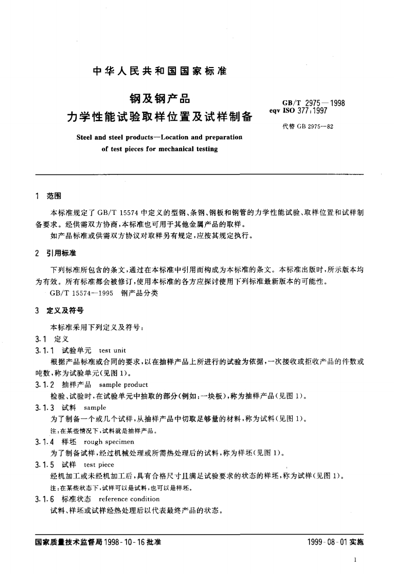 gbt2975348072@abc16天前发布关注私信0.28MB16页022gbt2975此内容为付费资源,请付费后查看¥23¥36黄金会员免费钻石会员免费立即购买您当前未登录!建议登陆后购买,可保存购买订单付费资源 第1页 / 共16页 第2页 / 共16页 第3页 / 共16页 第4页 / 共16页 第5页 / 共16页 试读已结束,还剩11页,您可下载完整版后进行离线阅读 THE END标准规范 文本预览 1cs77.040.10H20中华人民共和国国家标准GB/T2975-1998eqv IS0377:1997钢及钢产品力学性能试验取样位置及试样制备Steel and steel products-Location and preparationof test pieces for mechanical testing1998-10-16发布1999-08-01实施国家质量技术监督局发布 查看更多 收起部分 喜欢就支持一下吧收藏