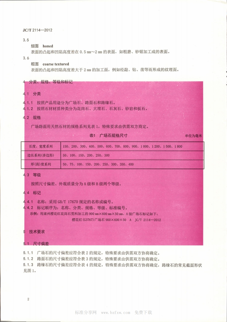 JCT2114-201348072@abc17天前发布关注私信3.05MB13页045JCT2114-201此内容为付费资源,请付费后查看¥23¥36黄金会员免费钻石会员免费立即购买您当前未登录!建议登陆后购买,可保存购买订单付费资源 第1页 / 共13页 第2页 / 共13页 第3页 / 共13页 第4页 / 共13页 第5页 / 共13页 试读已结束,还剩8页,您可下载完整版后进行离线阅读 THE END标准规范 文本预览 ICS91.100.20Q21备案号:38945-2013JC中华人民共和国建材行业标住JC/T2114一2012广场路面用天然石材Natural stone stock for external paving2012-12-28发布2013-06-01实施中华人民共和国工业和信息化部发布.e 查看更多 收起部分 喜欢就支持一下吧收藏