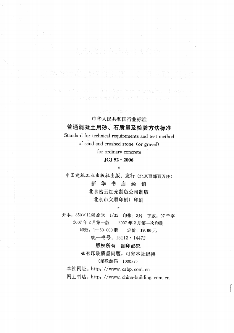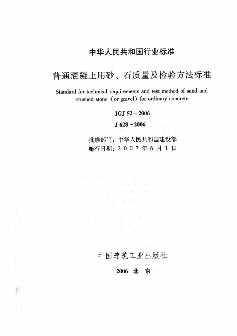 JGJ52-2006348072@abc17天前发布关注私信7.16MB117页036JGJ52-2006此内容为付费资源,请付费后查看¥23¥36黄金会员免费钻石会员免费立即购买您当前未登录!建议登陆后购买,可保存购买订单付费资源 第1页 / 共117页 第2页 / 共117页 第3页 / 共117页 第4页 / 共117页 第5页 / 共117页 试读已结束,还剩112页,您可下载完整版后进行离线阅读 THE END标准规范 文本预览 UDC中华人民共和国行业标准JCJPJGJ52-2006普通混凝土用砂、石质量及检验方法标准Standard for technical requirements and test methodof sand and crushed stone (or gravel)for ordinary concrete2006-12-19发布2007-06-01实施中华人民共和国建设部发布 查看更多 收起部分 喜欢就支持一下吧收藏