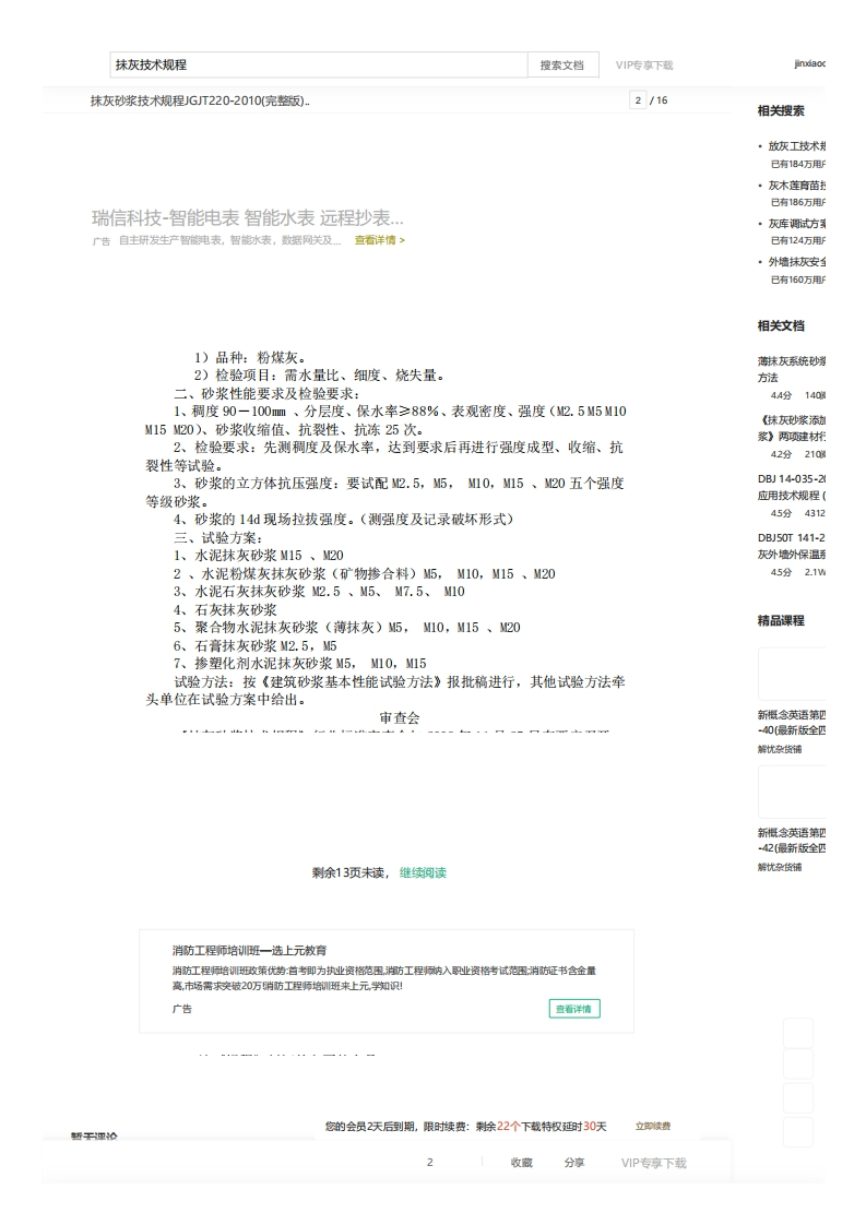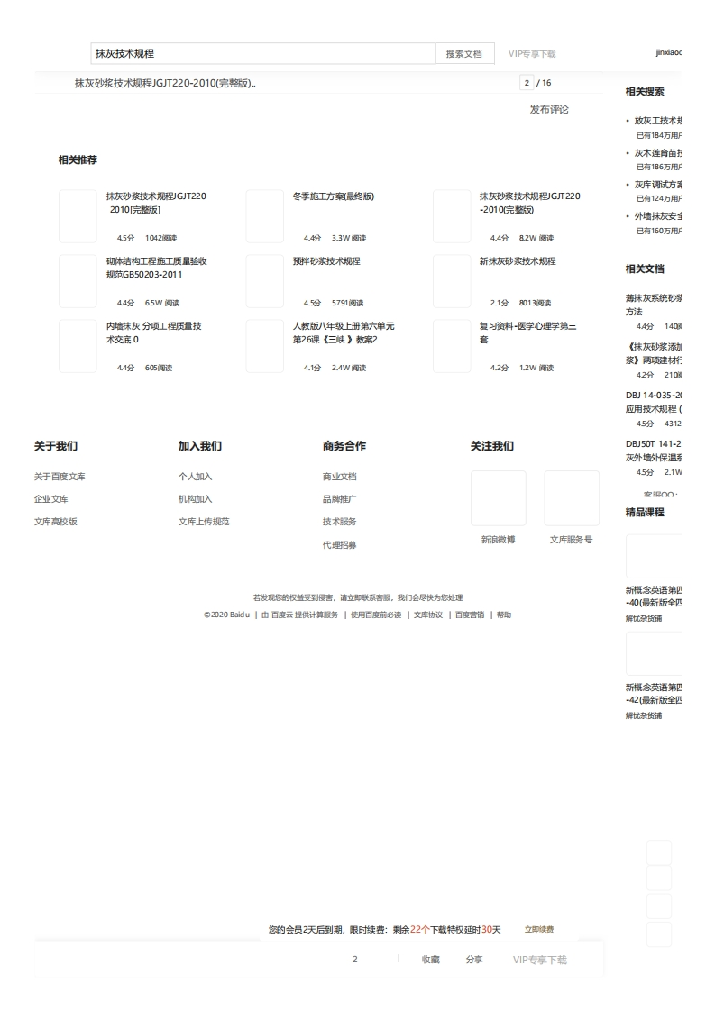 抹灰技术规程搜索文档VIP专享下载抹灰砂浆技术规程JGT220-2010(完整版).2/16尊贵的百度教音VMP用户:您的VP报务即将于2020/07/15到期!限时续费年VP,点击续费>>·灰木莲音苗已有186万用人气览幼儿读物幼儿教·灰库调试方到已有124万用F抹灰砂浆技术规程JGT220-2010(完整版).·外墙抹灰安当44分(超过78%的文档)2.7W阅读930下载2018-08-03上传16页111KB已有160万用您的会员2天后到期,限时续费:利除22个下战特权延时30天立即续费VIP专相关文档ⅥIP专享下载收藏分享鲜报认领薄抹灰系统砂划方法44分140《抹灰砂浆添就浆》两项硅材州42分210明DBJ14-035-2应用技术规程(45分4312DBJ50T141-2灰外墙外保温手45分2.1W抹灰砂浆技术规程精品课程新概念英语第卫40(最新版全四JG/T220-2011解忧杂货铺新概念英语第卫42(最新版全四解忧杂货铺精品课程新概念英语第虹-40(最新版全四解忧缺新概念英更培卫您的会员2天后到期,限时续费:利余22个下载特权延时30天立即续男42(新版全四解忧杂货纯2收藏分享VIP专享下载